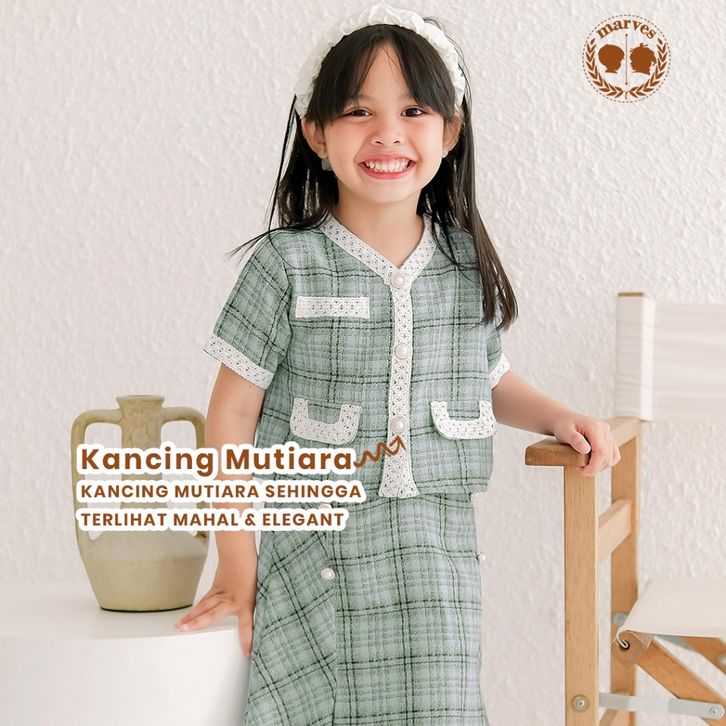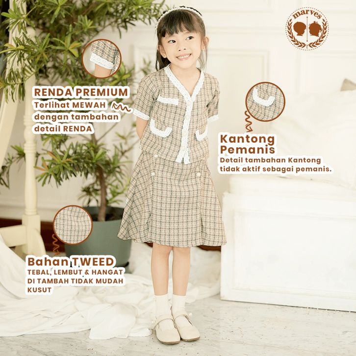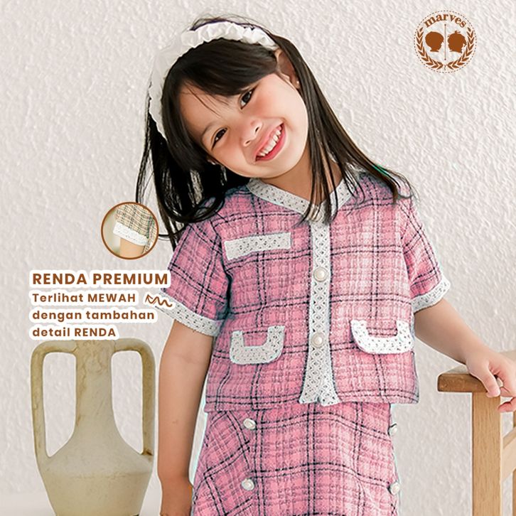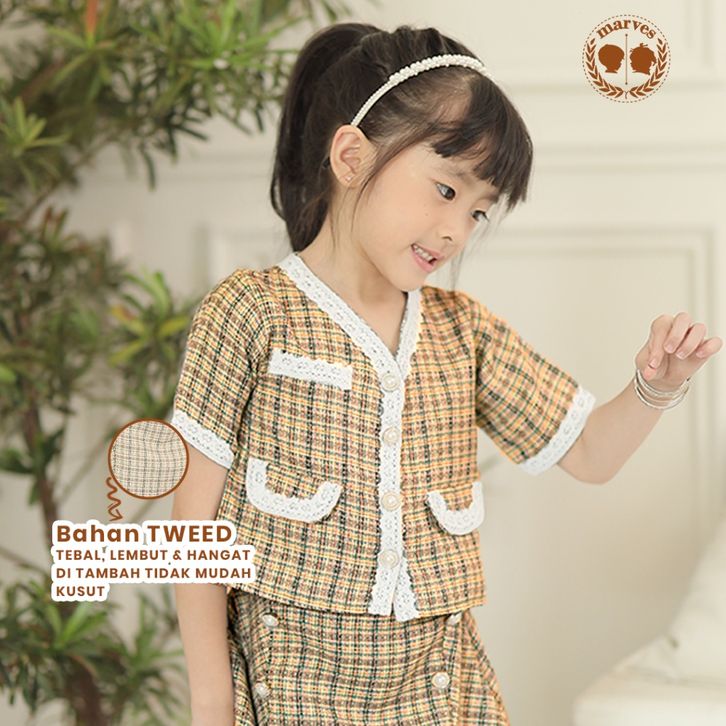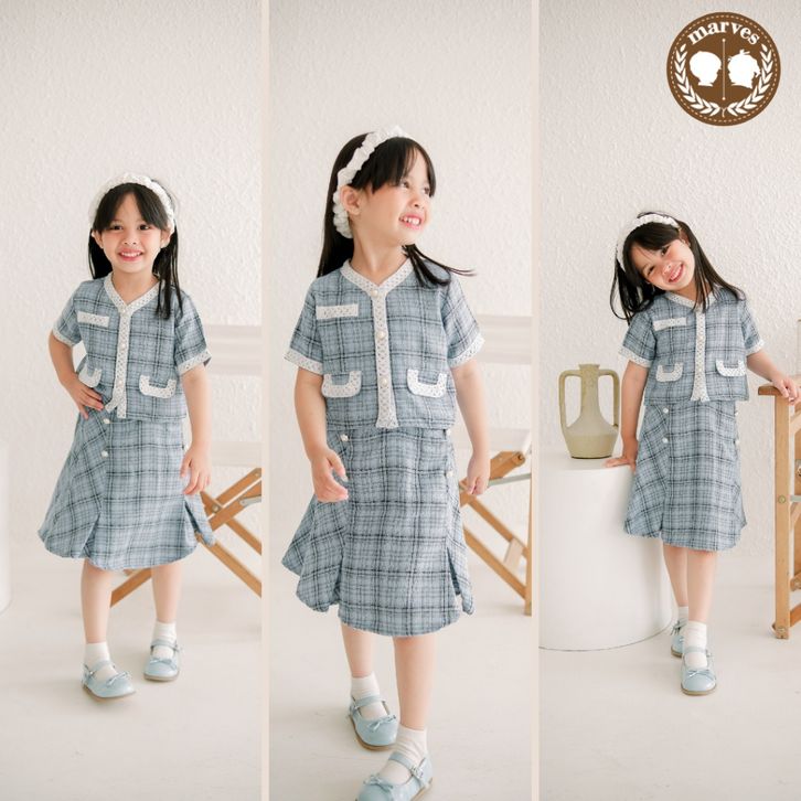 Baju Anak Perempuan Setelan Dress One Set Korean Style Bahan Tweed Wool Lengan Pendek Usia 2-14 Tahun Termurah