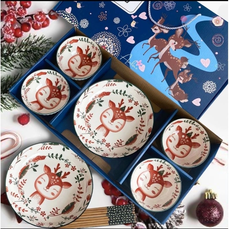 AVELINE MANGKOK XMAS [SET BESAR] HAMPERS NATAL MANGKOK NATAL SET PREMIUM PERALATAN MAKAN MANGKOK RUSA SET