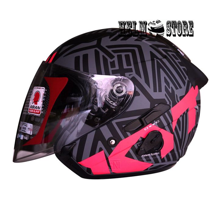 HELM KYT GALAXY FLAT R NEON MATT GORILA GREY FUXIA ORIGINAL / KYT GALAXY HALF FACE SNI DOT