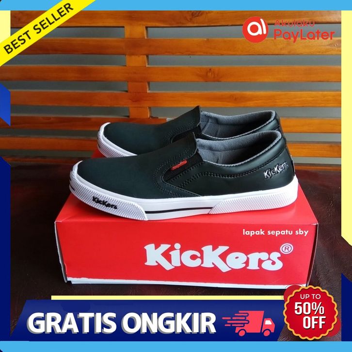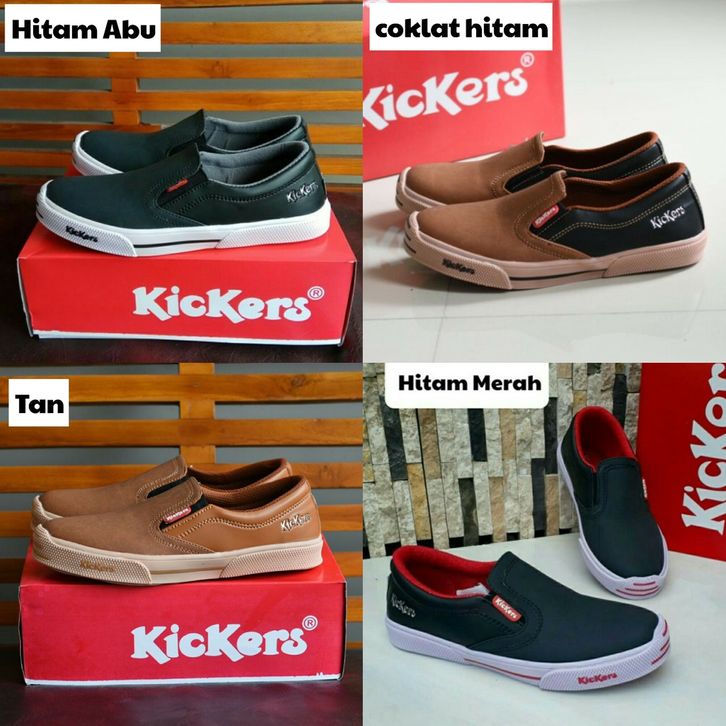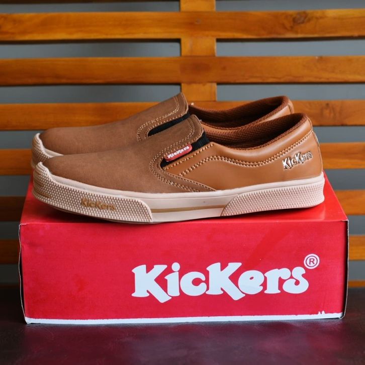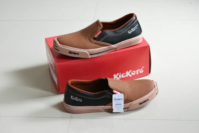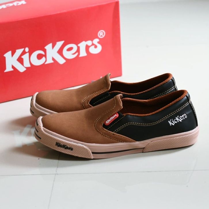 SEPATU KICKERS MX ONE SLIP ON SLOP HITAM COKLAT TUA TAN CASUAL SANTAI PRIA KERJA SEKOLAH TANPA TALI