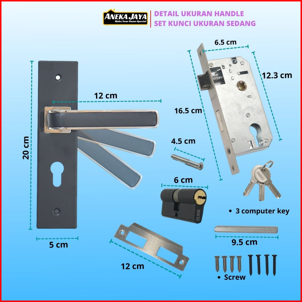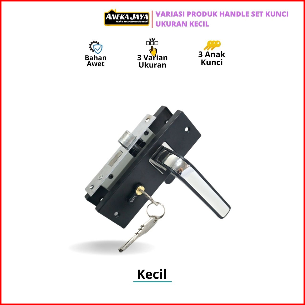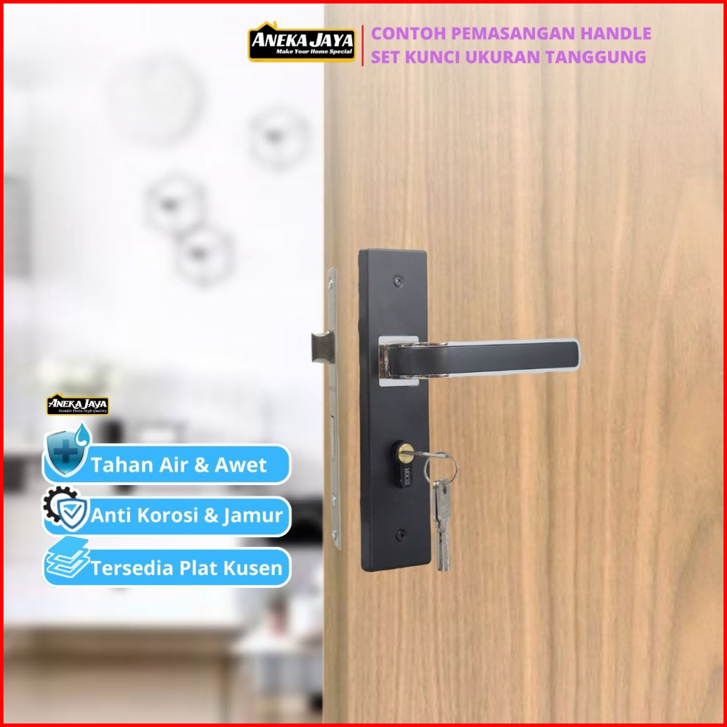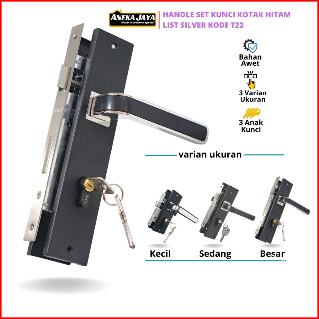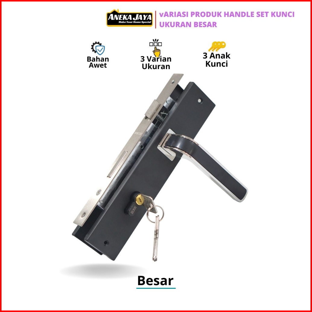 Handle Set Kunci Pintu Hitam Ring Silver Ukuran Besar 25 Cm Tanggung 20 Kecil 15 - Gagang Handle Kamar Utama