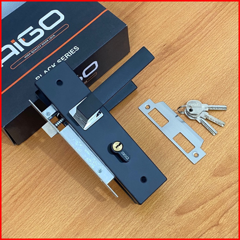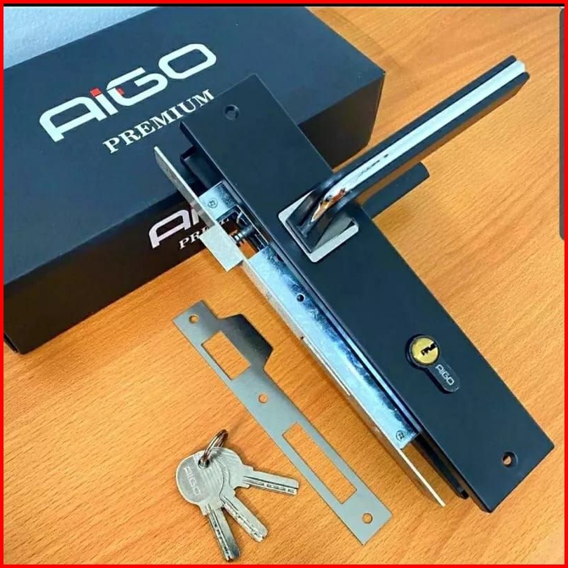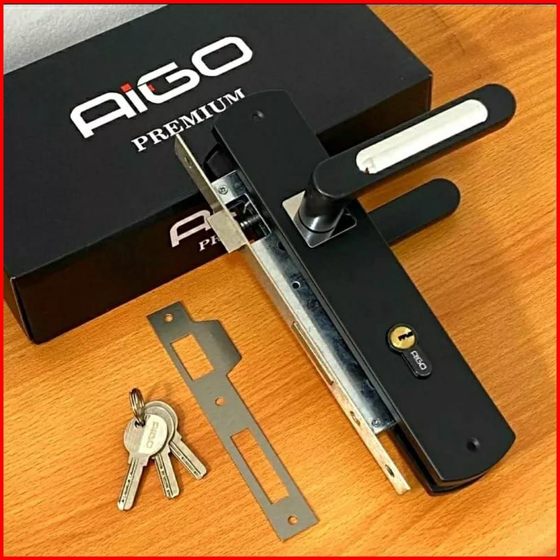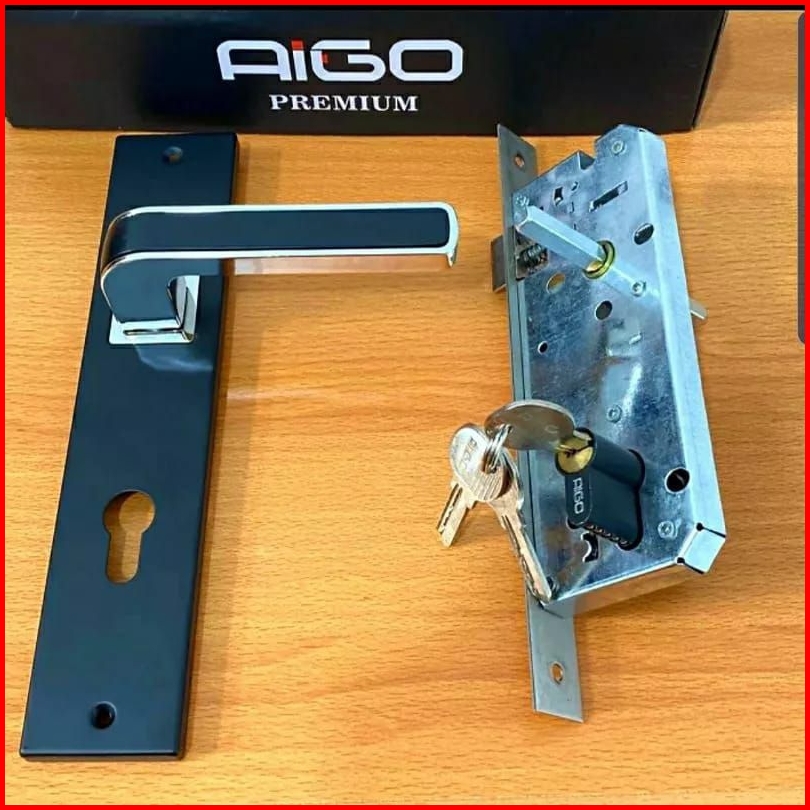 Handle Pintu Hitam Set Aigo Kunci Pintu Rumah Ukuran Besar 25cm Gagang Kotak