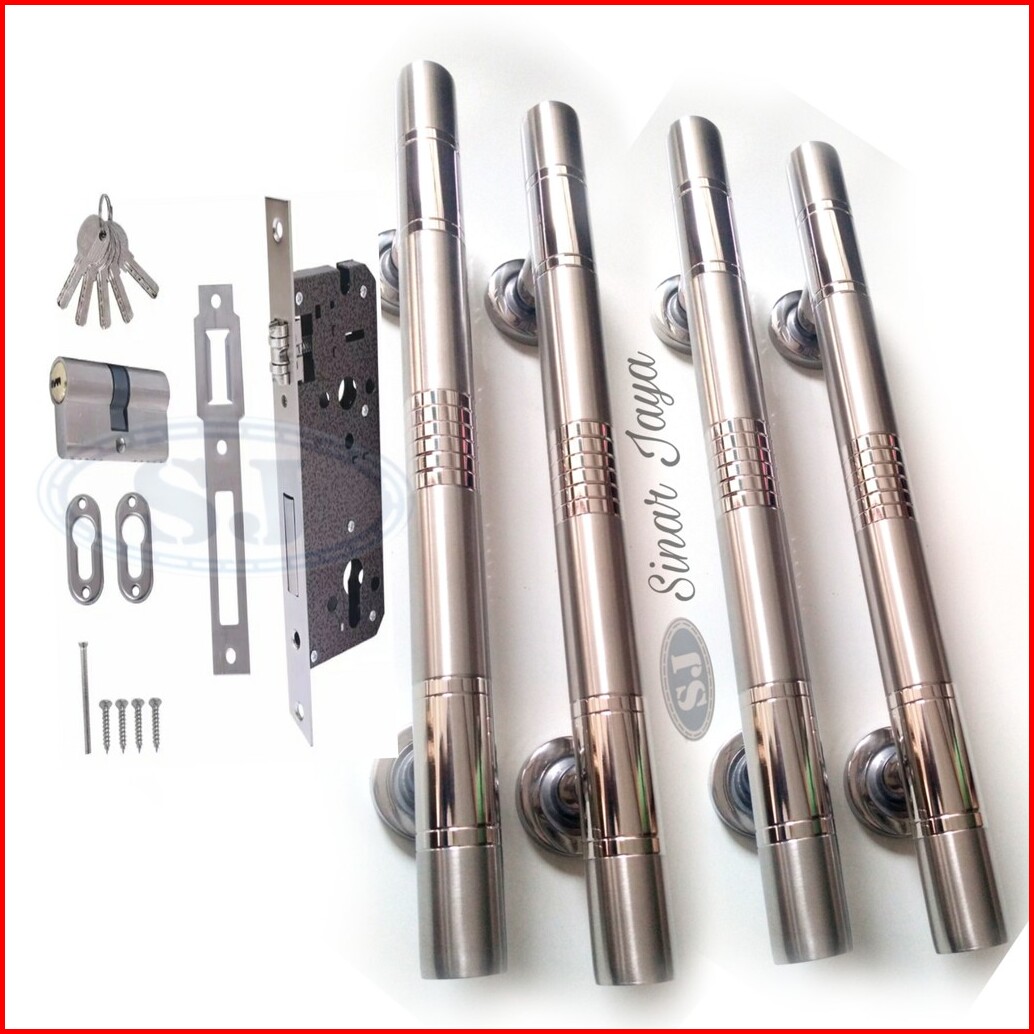 1 Satu Set Handle Pintu Panjang 60cm 45cm Gagang Pintu Rumah Minimalis Handle Tarikan Pintu Stainless Pegangan Kunci Pin