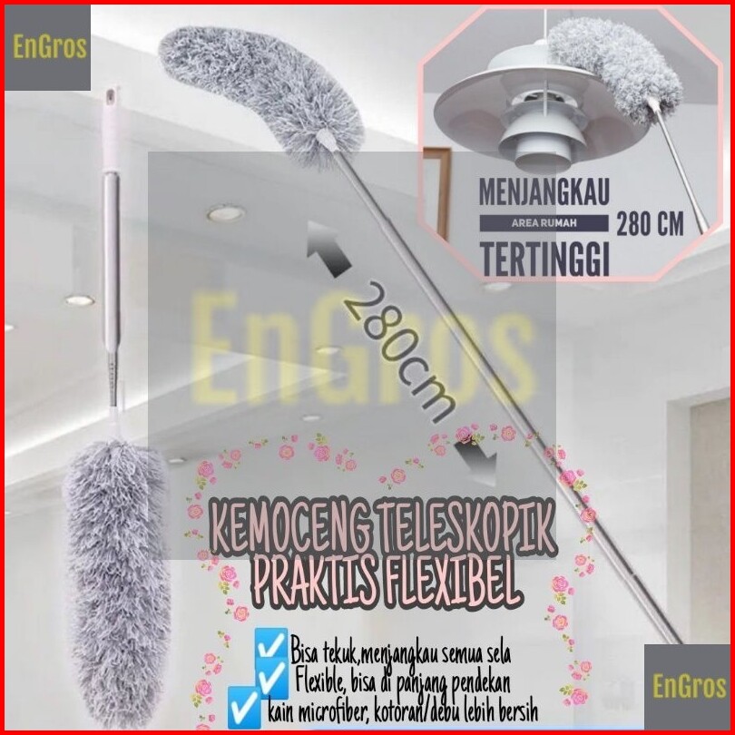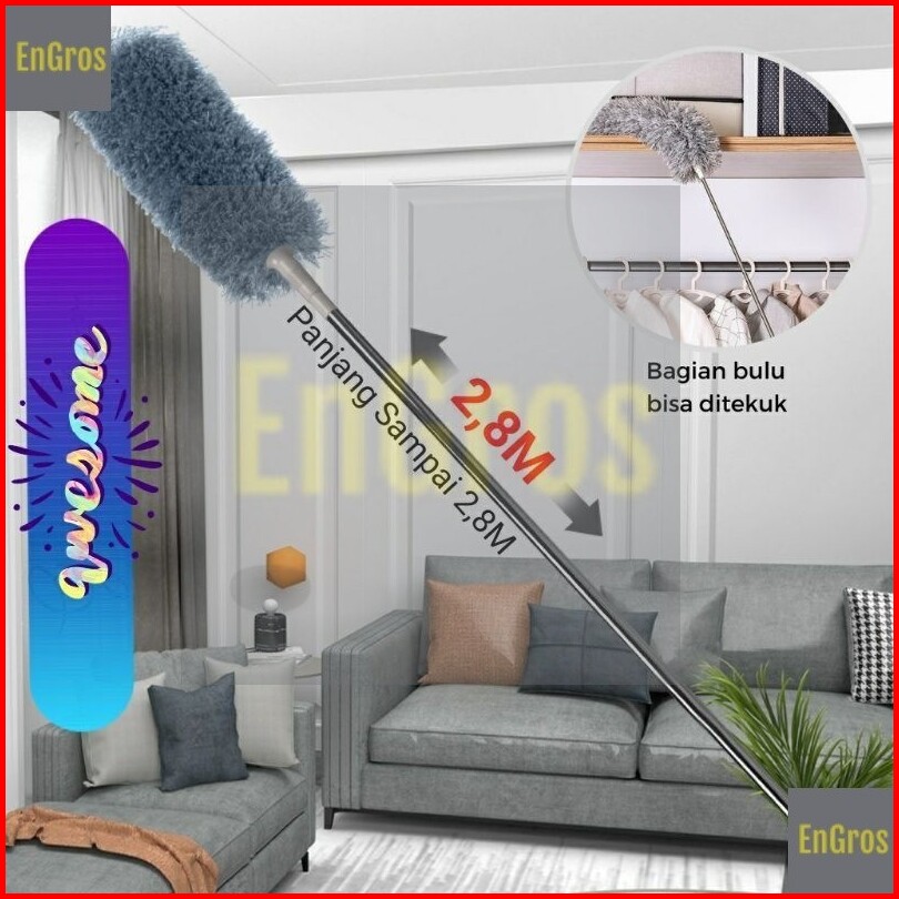 Kemoceng Teleskopik 2.8 Meter Tarik Tekuk Fleksibel Sapu Microfiber Pembersih Debu Gagang Panjang
