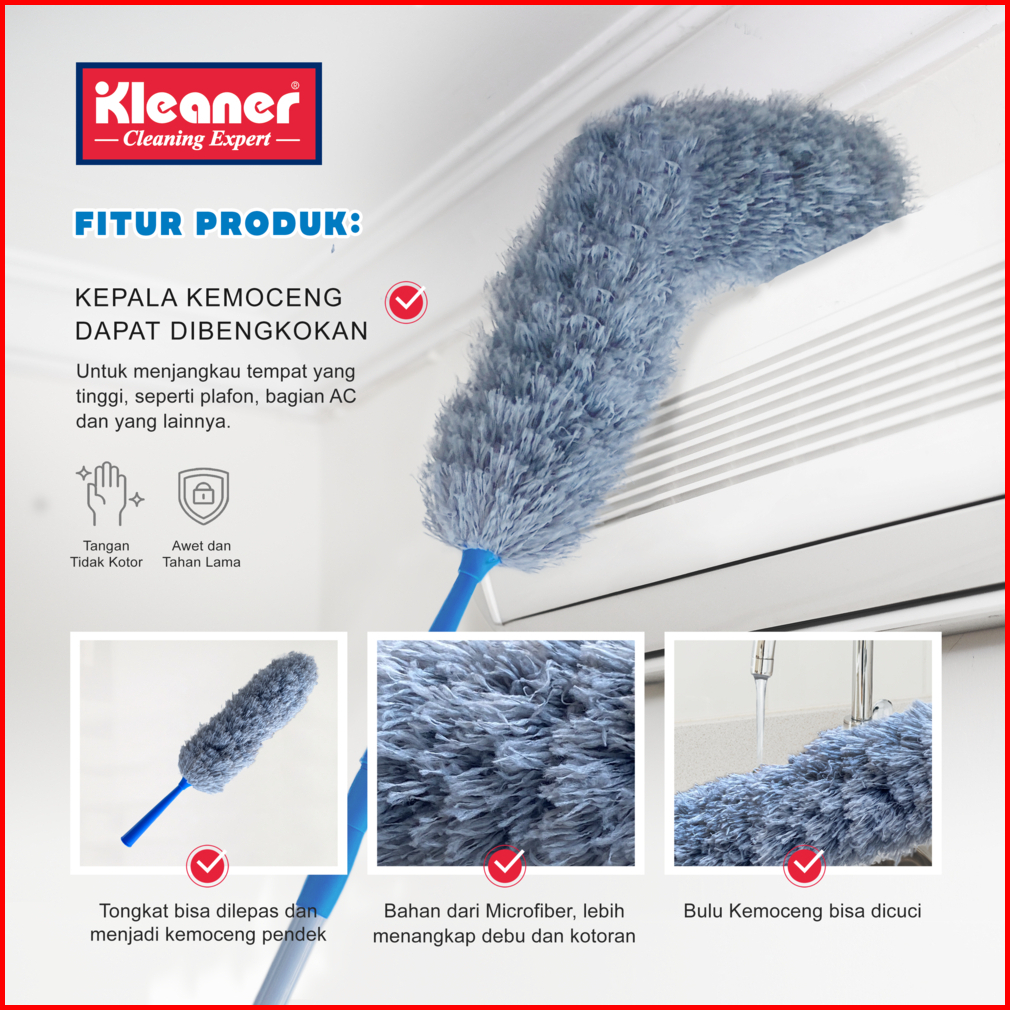 Kleaner Kemoceng Fleksibel Gagang Extend Teleskopik Abu Abu