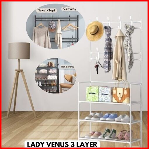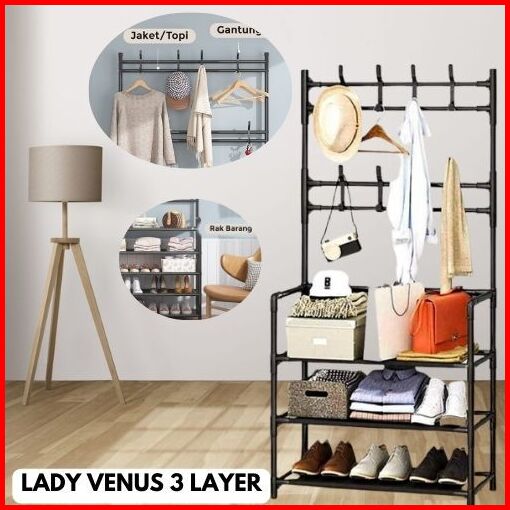 Rak Gantungan Baju Sepatu Tas Stand Hanger Topi Jaket Rak Jemuran Baju Susun Rak Sepatu Multifungsi - Venus Uniq Portabl