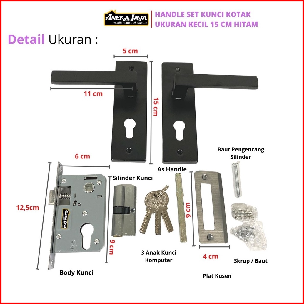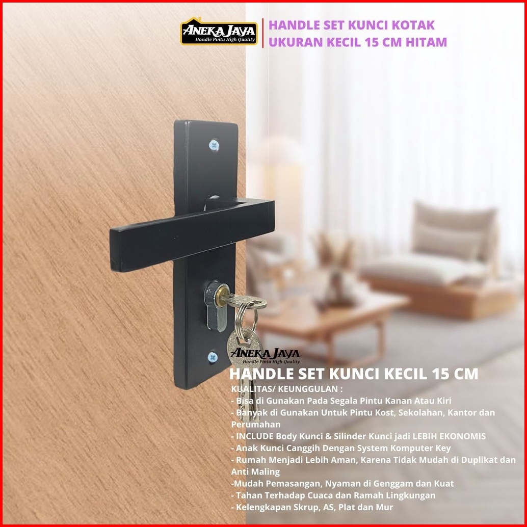 Handle Set Kunci Kecil 15 Cm - Hitam Doff Premium - Gagang Pintu Kamar Utama Minimalis