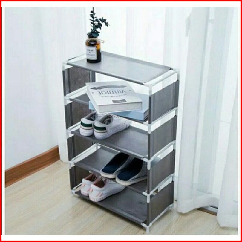 Rak Sepatu Portable 5 Tingkat Rangka Besi Kokoh