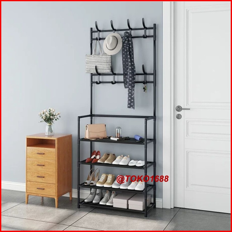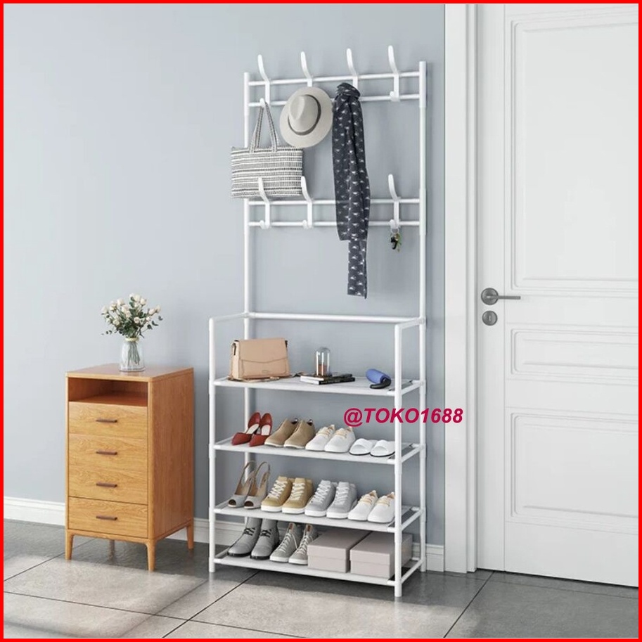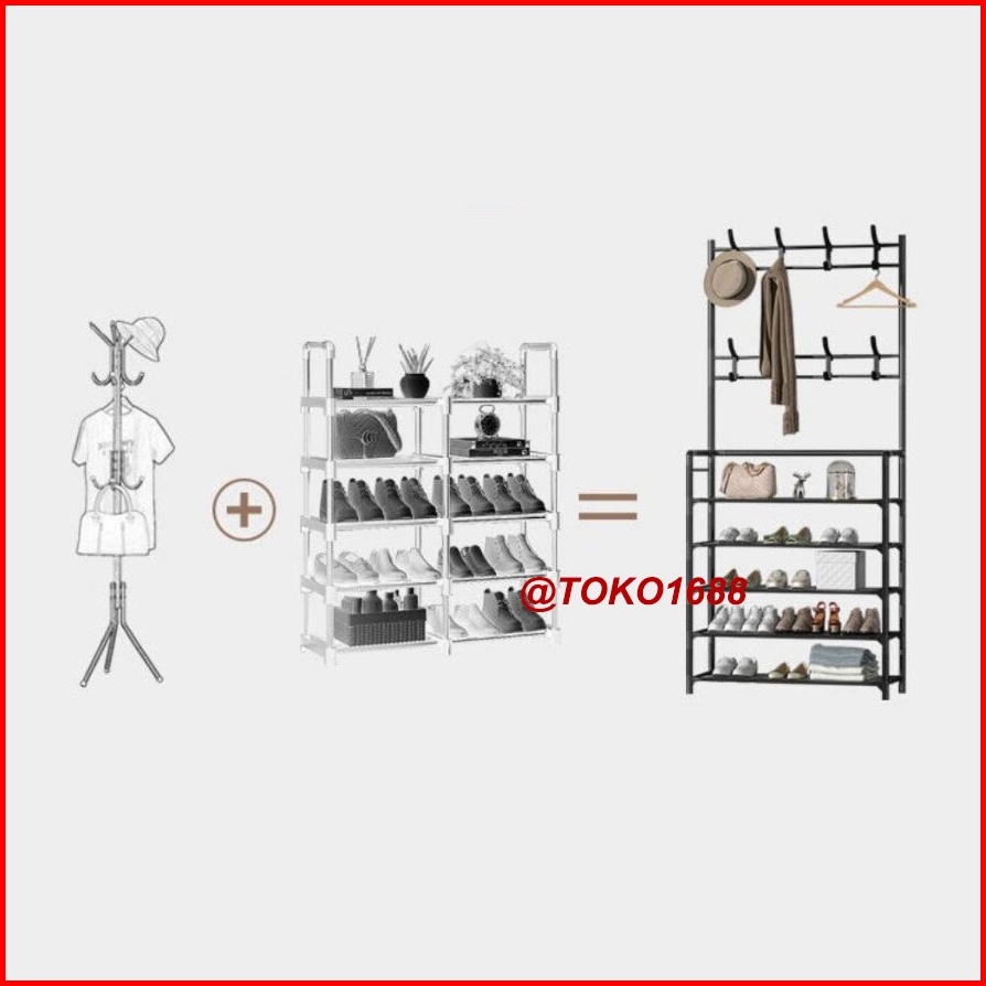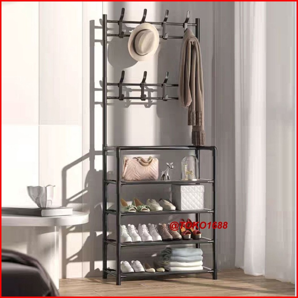 Rak Sepatu Portable Stand Hanger Rak Gantungan Baju Tempat Topi Hanger Tas Rak Penyimpanan Susun