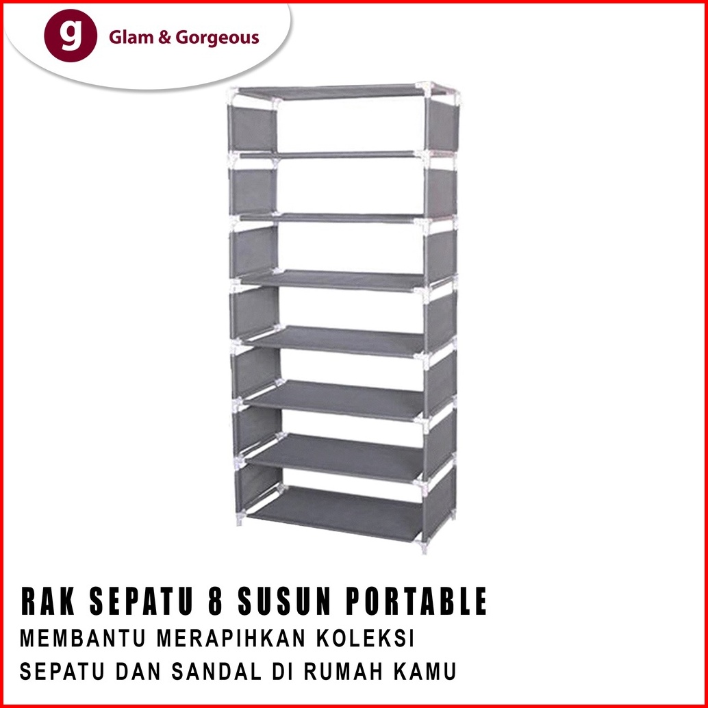 Rak Sepatu Portable Susun 8 Rangka Besi Rs017 Murah Kuat Praktis