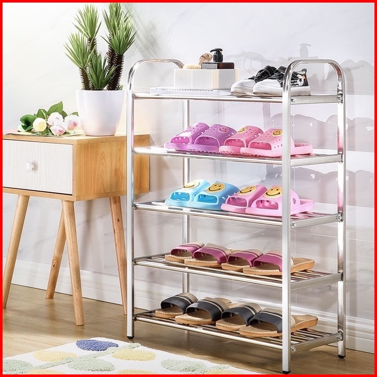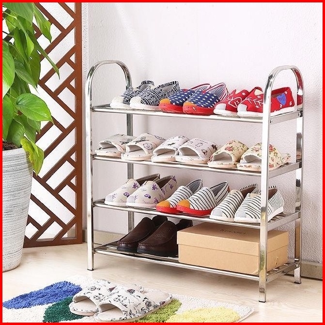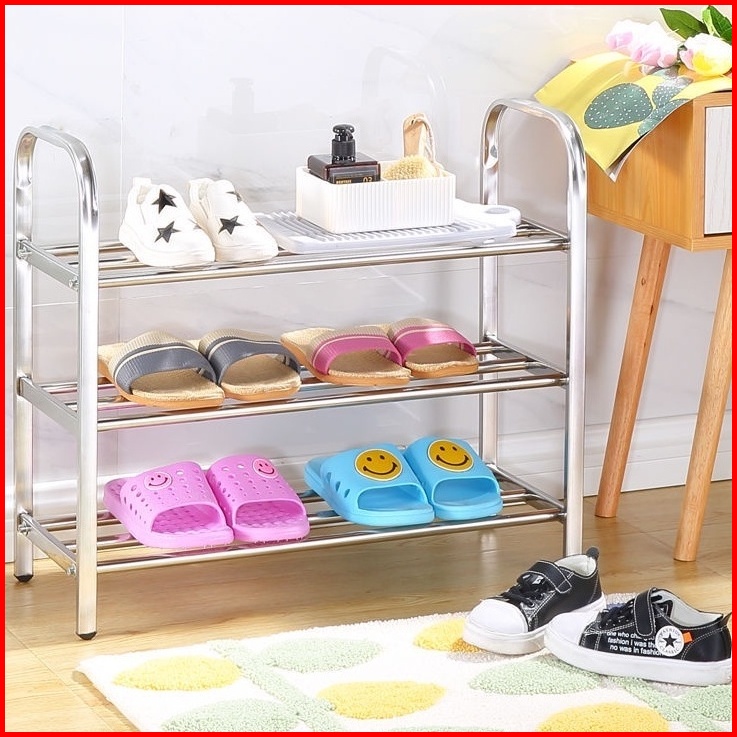 Rak Sepatu Susun Stainless Steel Tempat Sandal Alas Kaki Rak Susun Bahan Kuat Multifungsi Portable
