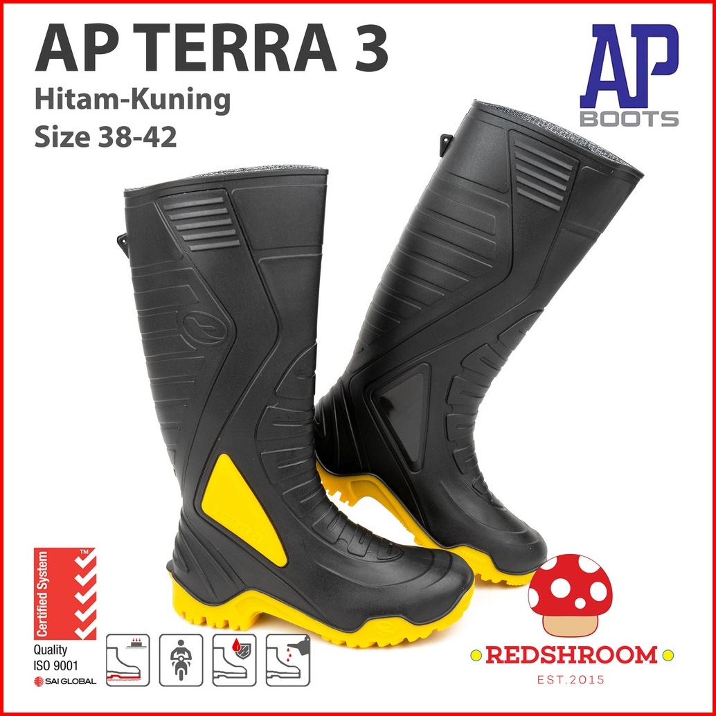 Sepatu Boot Tinggi Ap Terra 3 Hitam Kuning Ap Boots Karet Lokal Ringan Anti Slip Air Perkebunan