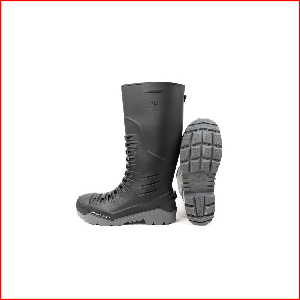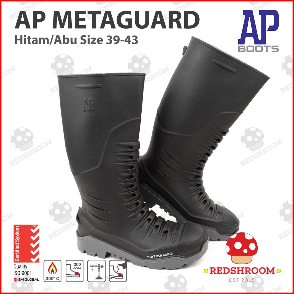 Sepatu Boot Safety Tinggi Metaguard Hitam Ap Boots Toe Cap Besi Anti Slip Air Lokal Proyek Kontruksi
