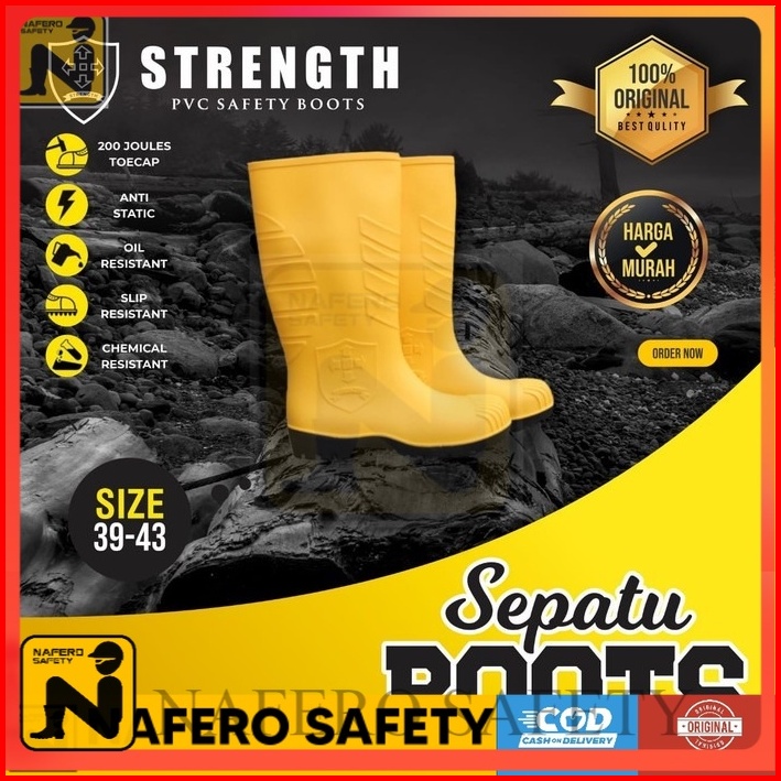 Sepatu Safety Boots Proyek Pvc Ujung Besi Steel Toe Strength Sni Petrova