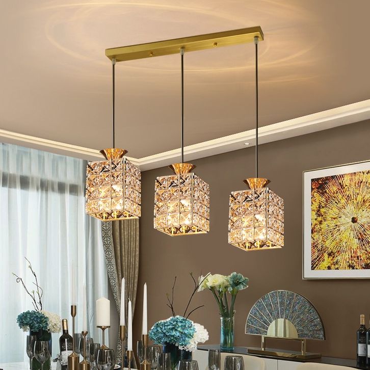 Lampu Gantung Crystal Lampu Gantung Minimalis Kristal 3 In 1 Kotak Bohlam tidak termasuk Lampu Kristal