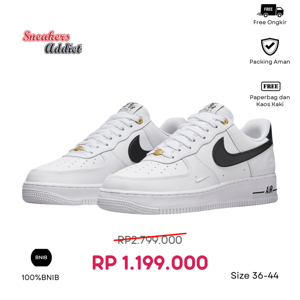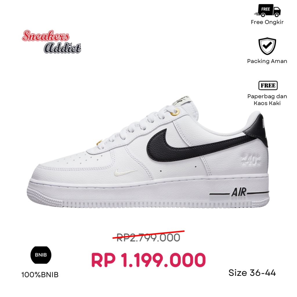 SEPATU SNEAKERS NIKE AIR FORCE 1 ‘07 LOW 40TH ANNIVERSARY WHITE BLACK BNIB GLOBAL MARKET