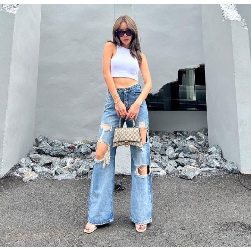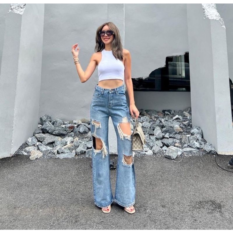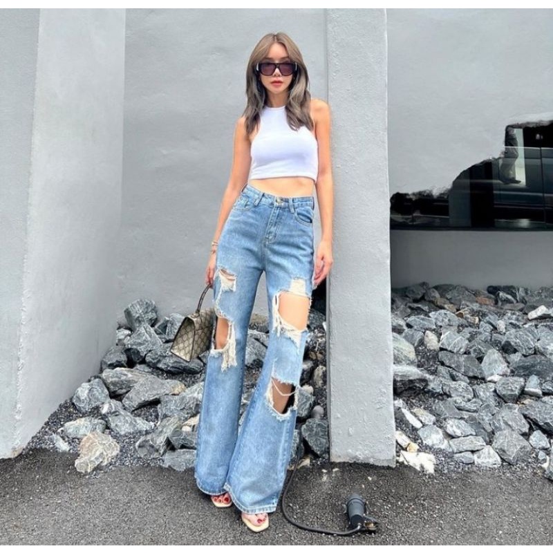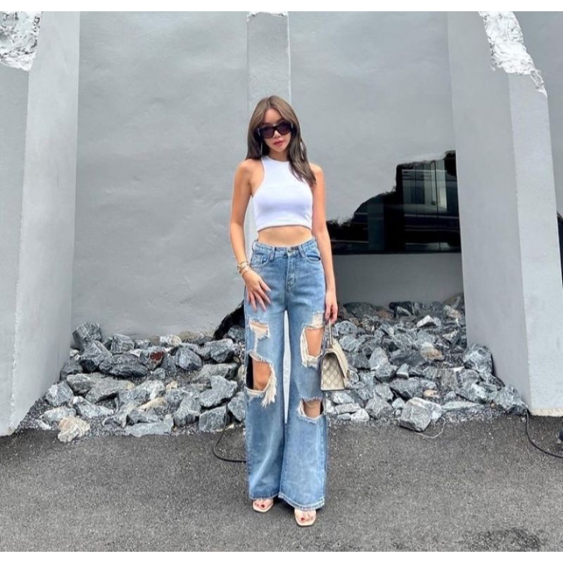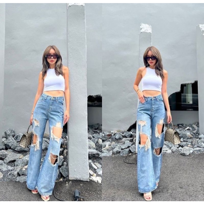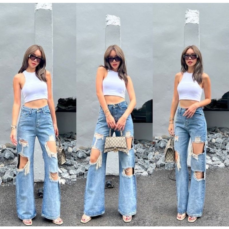 READY CELANA CUTBRAY DENIM 3718 HW RIPPED PROMTHONG HW BEST SELLER IMPORT BANGKOK FASHION PANTS JEANS WANITA TERMURAH