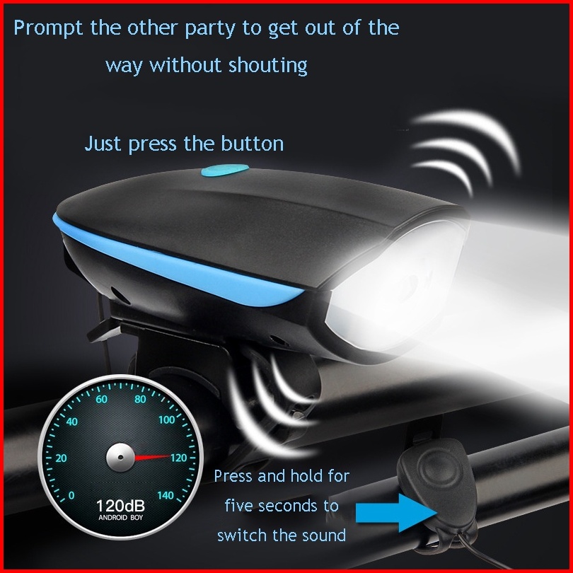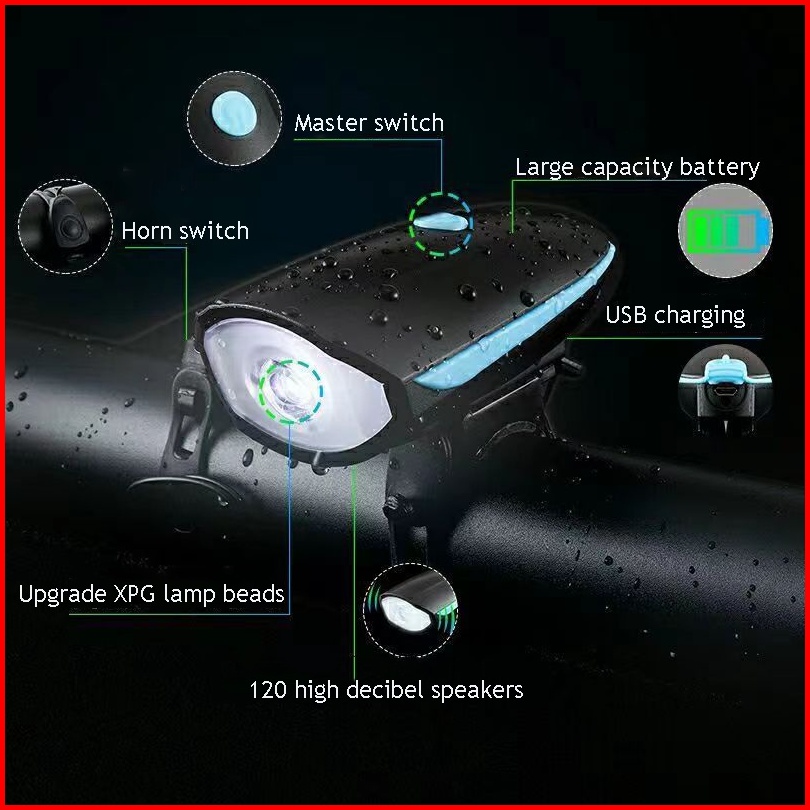 Lampu Depan Sepeda Led Plus Klakson Usb Cas Rechargeable Sepeda - Waterproof
