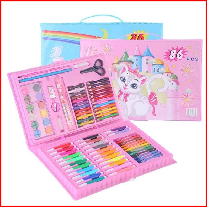 Stationary Set Isi 86 Pensil Crayon Warna Cat Air Perlengkapan Sekolah Menggambar Anak Alat Warna