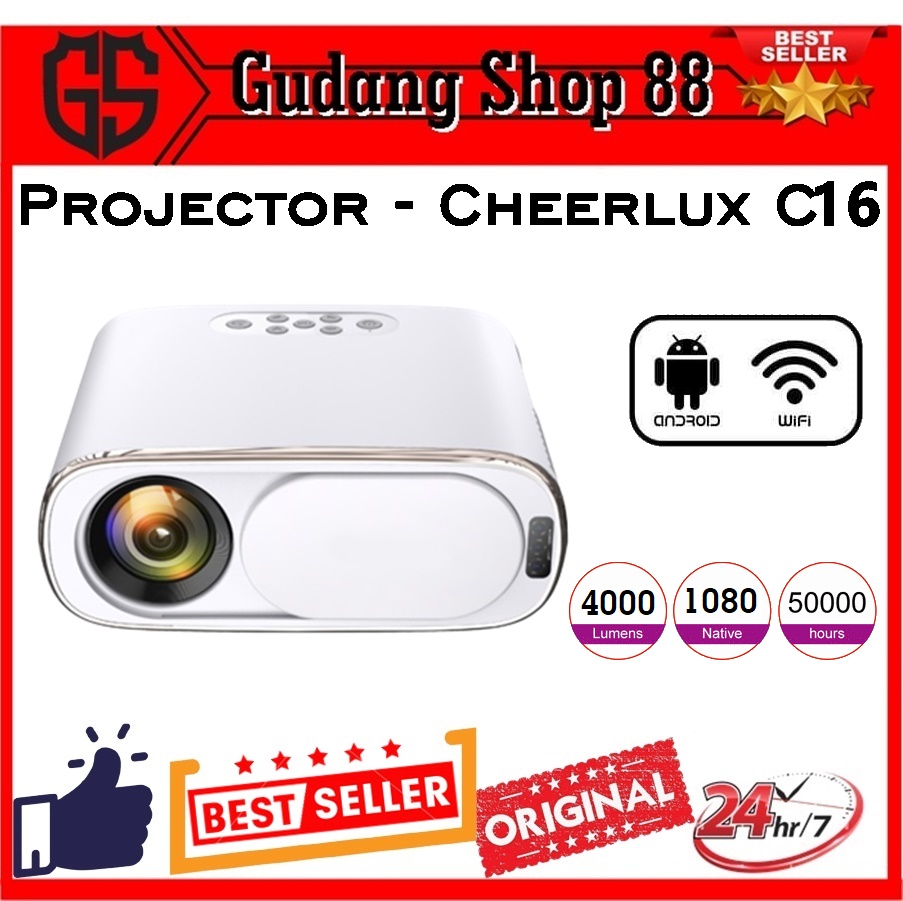 Proyektor Cheerlux C16 Android WiFi LED 1080P Projector 4000 Lumens