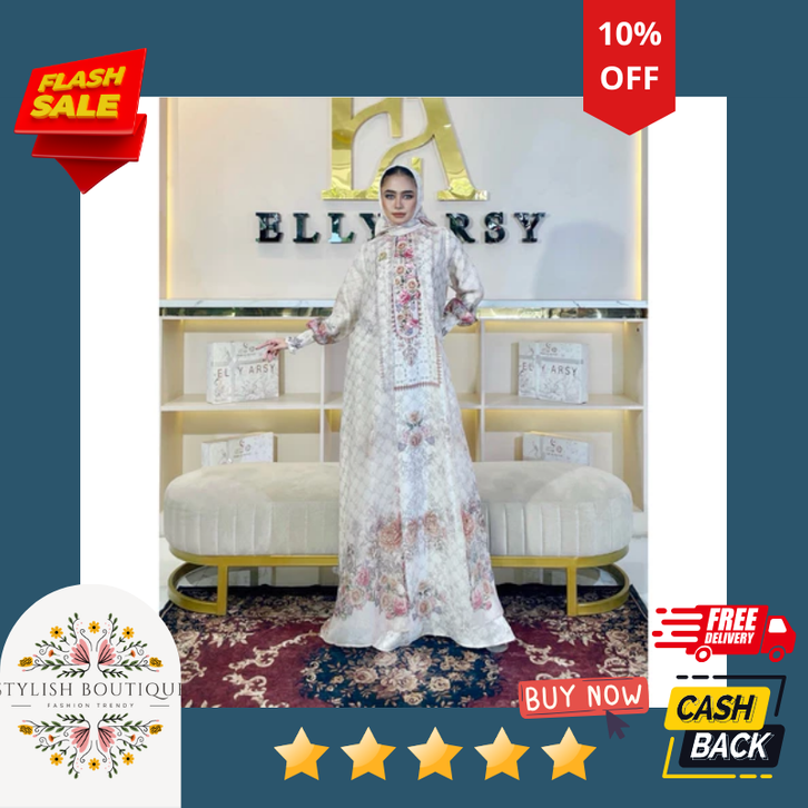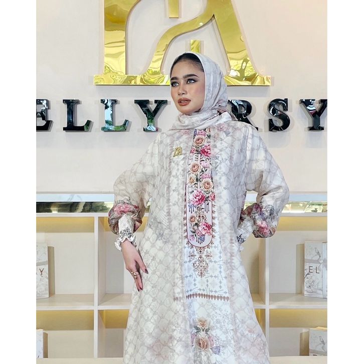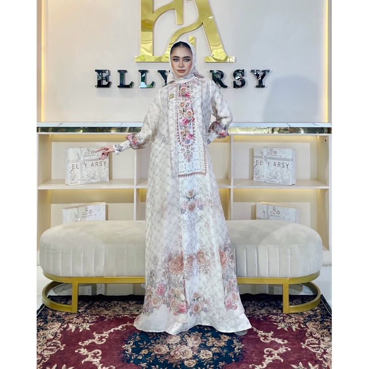 Dress Lebaran Elly Arsy Terbaru Mariana Dress Set Hijab Material Lady Zr Organza Full Pattern Exlusive By Ellyarsy