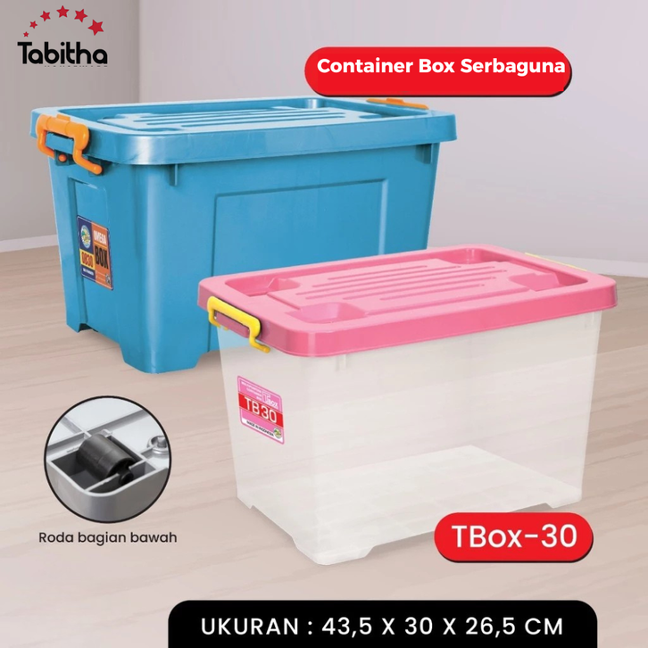 CONTAINER BOX PLASTIK TABITHA MINI KOTAK PENYIMPANAN 30 LITER RODA OMEGA MULTIFUNGSI MAKANAN PAKAIAN PROMO MURAH