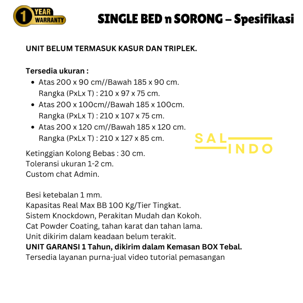RANJANG BESI TINGKAT SINGLE SORONG BED DIVAN UKURAN 120X200 100X200 90X200 DIPAN TEMPAT TIDUR ANAK DEWASA MURAH