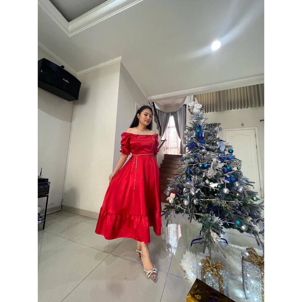 DRESS CHIBI TUNIK WANITA FASHION /DRESSCODE NATAL SATIN / DRESS PRINCESS SATEN