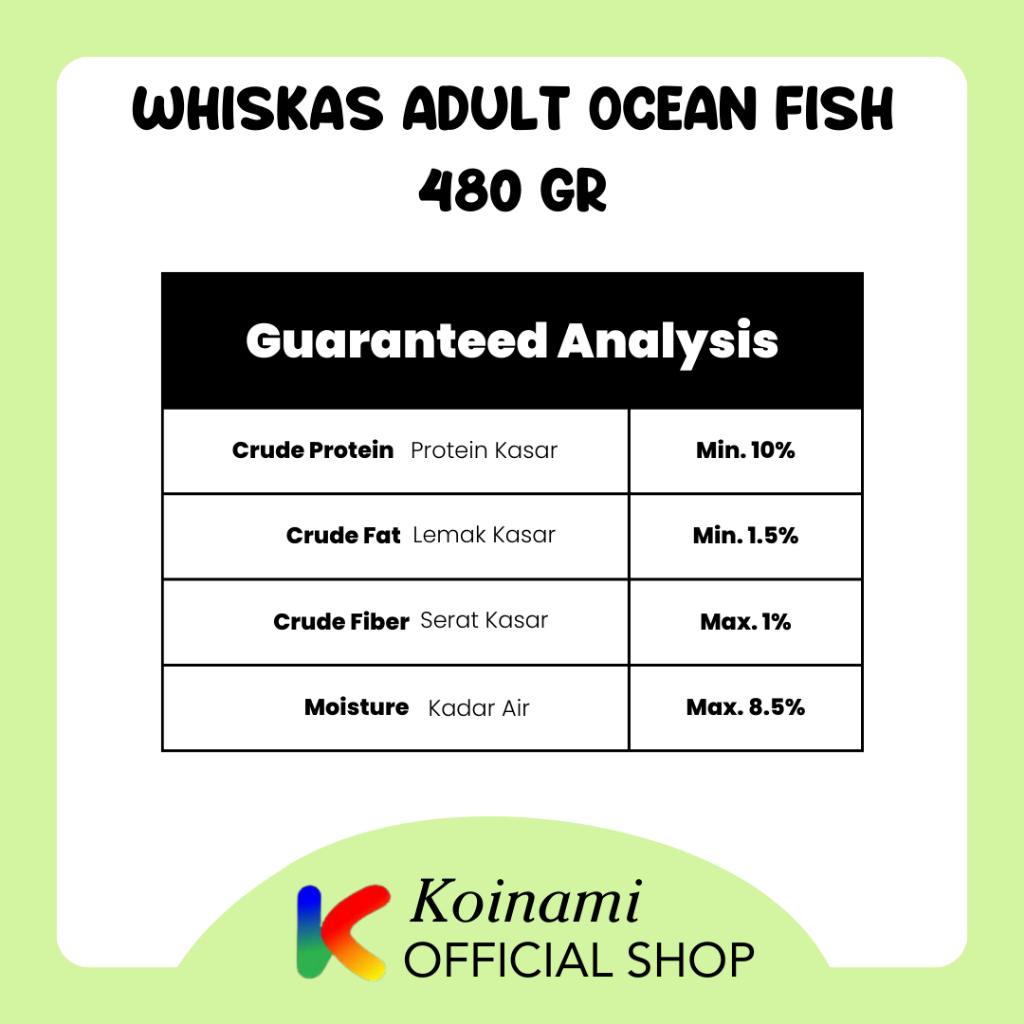 WHISKAS 480gr ADULT OCEAN FISH / ikan laut / cat food / dray food / pakan kucing / makanan hewan