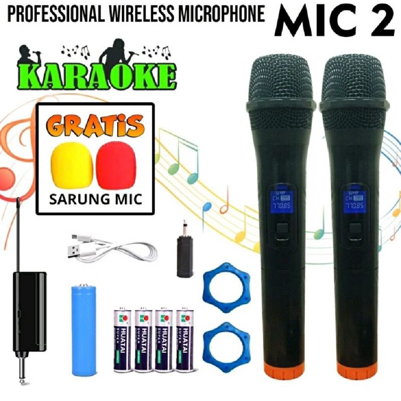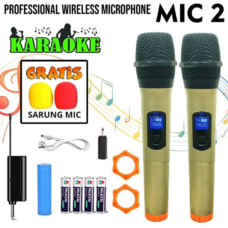 MIC MICROPHONE KARAOKE PROFESIONAL WIRELESS MIC 2 DOUBLE FREE SARUNG MIC