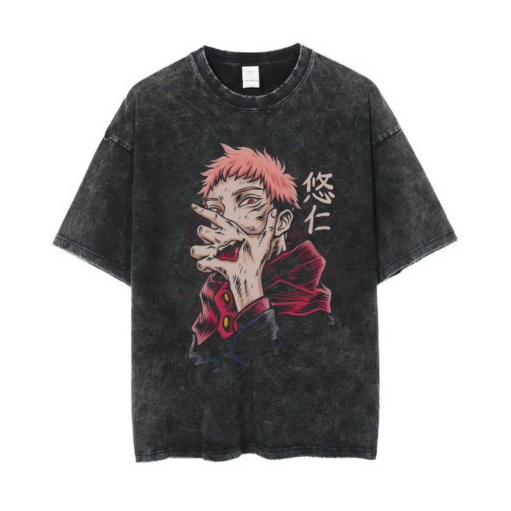 PSYCHO CRUCIFY "ITADORI YUJI" OVERSIZED T-SHIRT | STONE WASH | KAOS YUJI ITADORI | ANIME