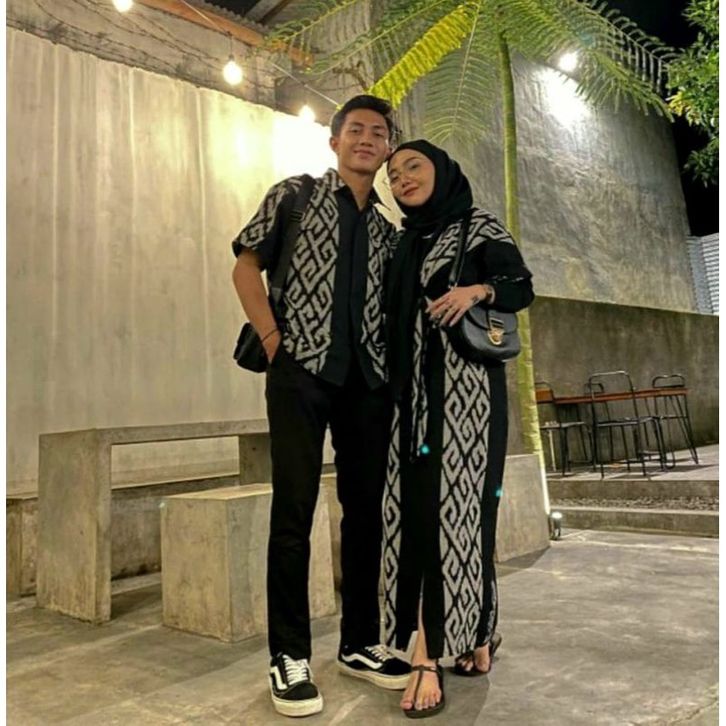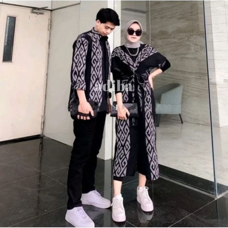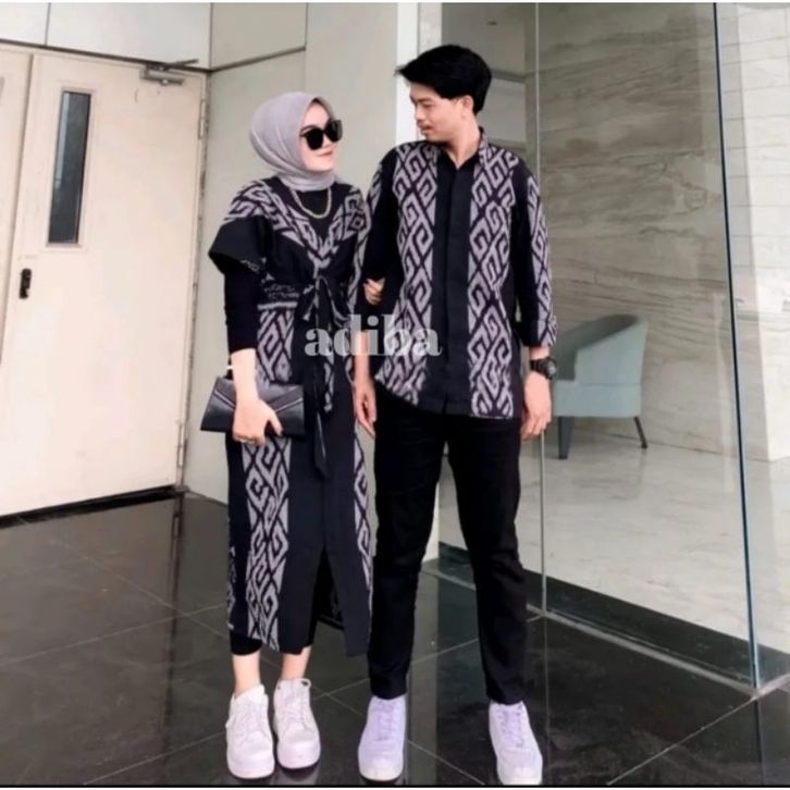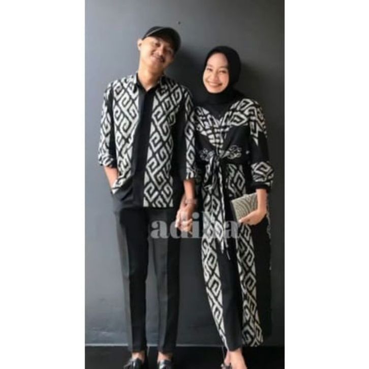 (READYSTOCK) TENUN TUNIK COUPLE MODEREN SET PAKAIAN COUPLE BAJU BATIK COUPLE MOTIF BLACK SILVER KOTAK LONG DRESS X KEMEJ