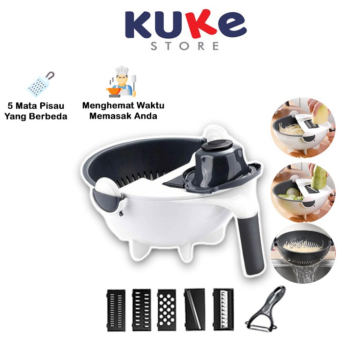 KUKE ALAT PARUTAN SET BASKOM MULTIFUNGSI / ALAT PEMOTONG SAYUR DAN BUAH BASKOM SARINGAN CUCI SERBAGUNA
