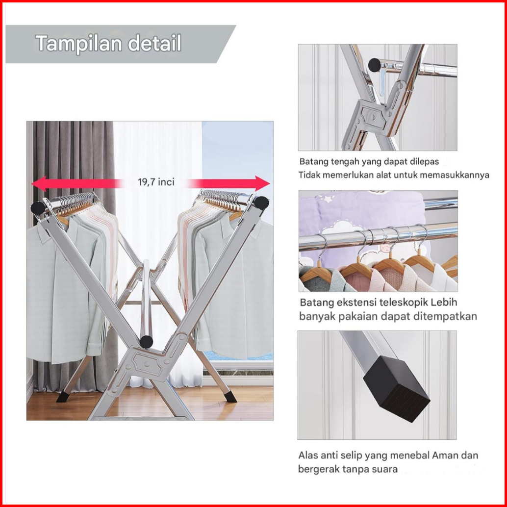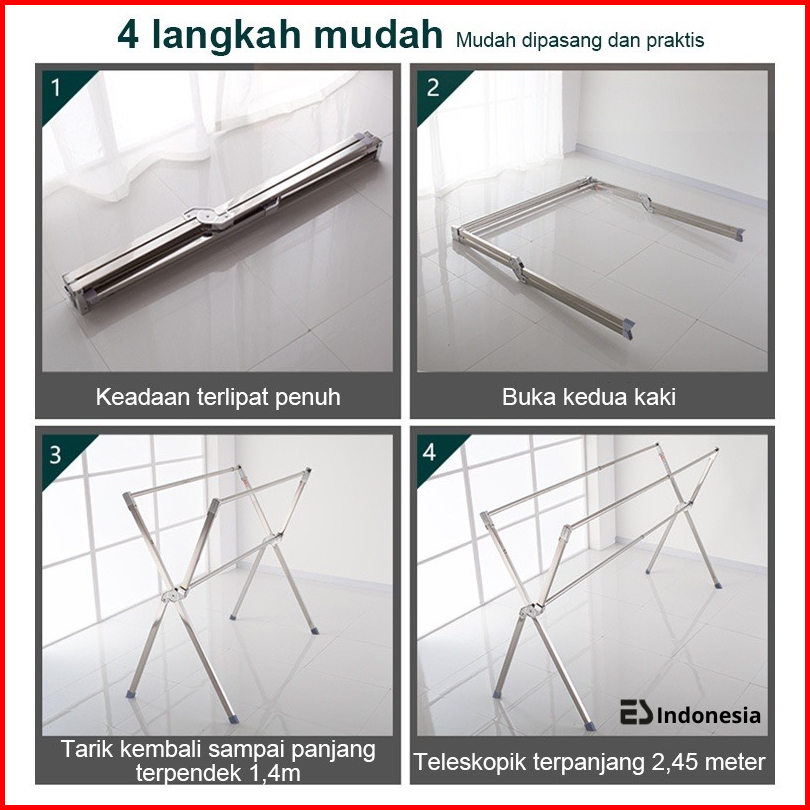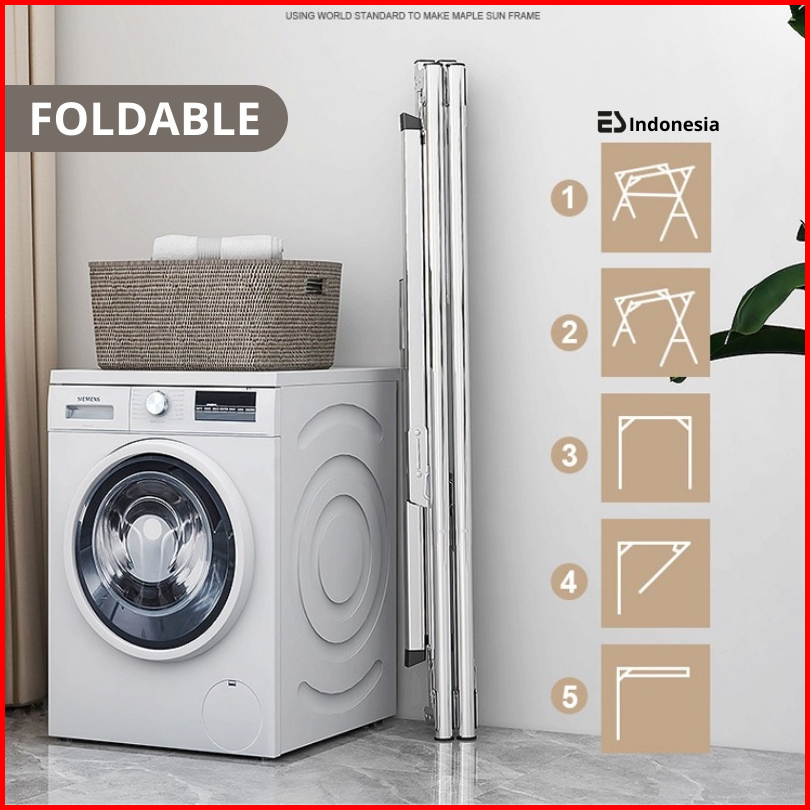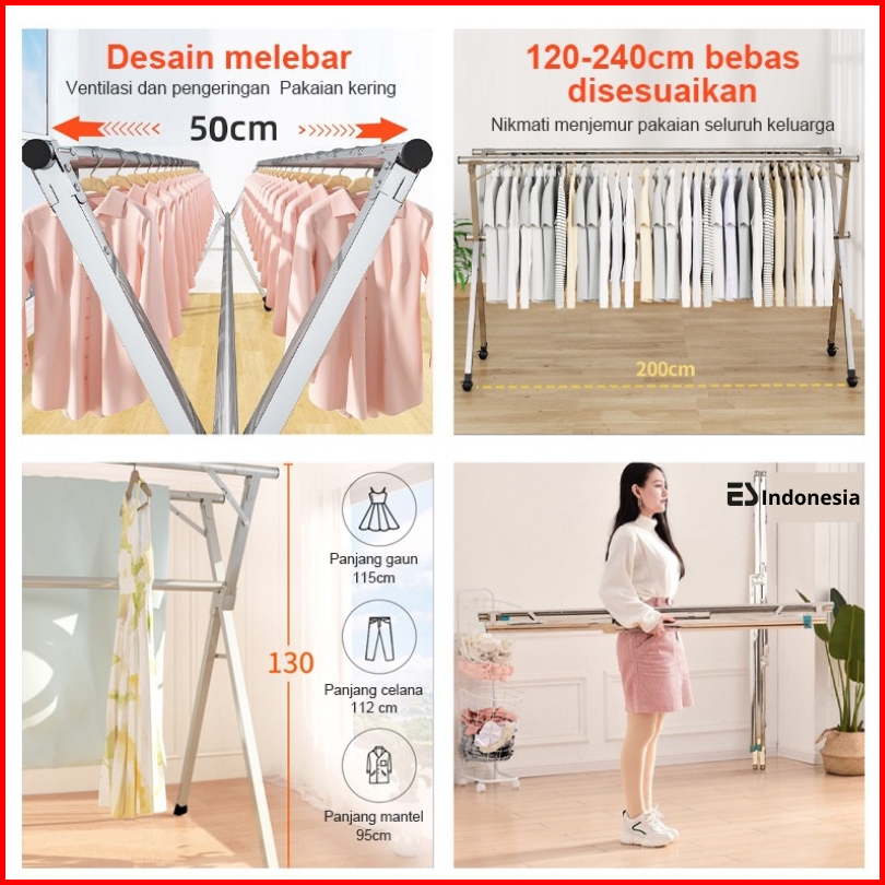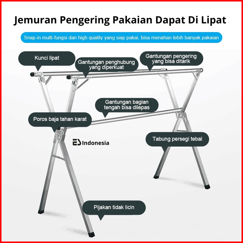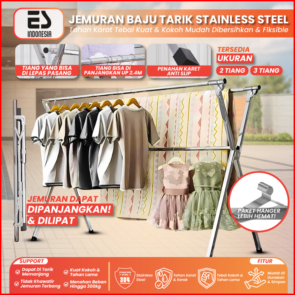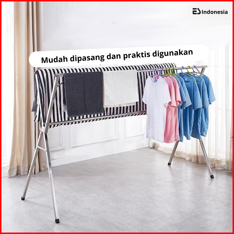 Esindo Jemuran Pakaian Baju Lipat Portable Stainless Steel Tiang Hanger Tarik Jumbo Kuat Anti Karat