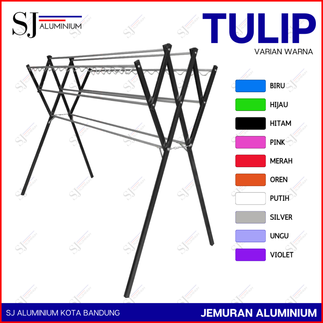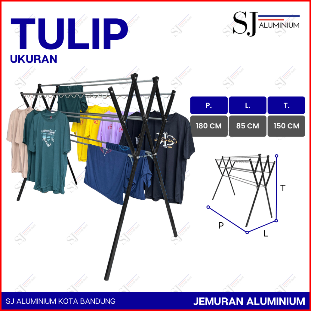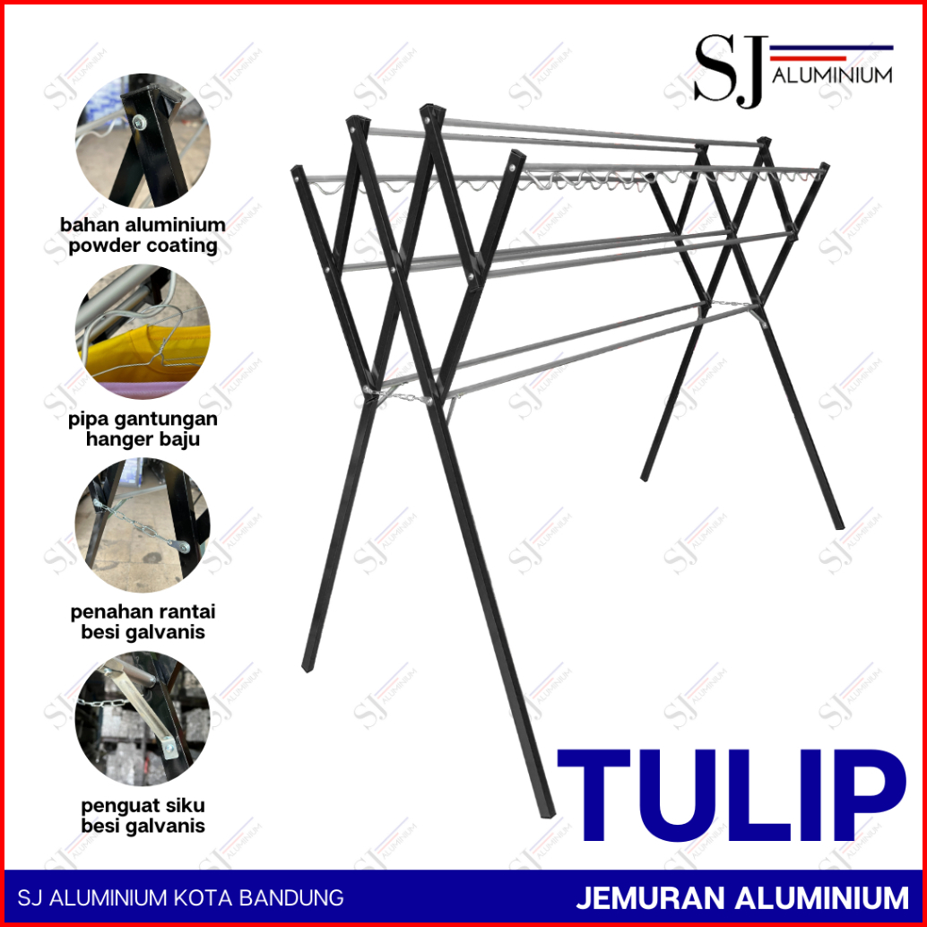 Tulip - Jemuran Aluminium Jumbo 180 Cm Jemuran Pakaian Jemuran Baju Rak Handuk - Tahan Beban 20 Kg Warna Hitam - Ukuran