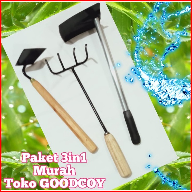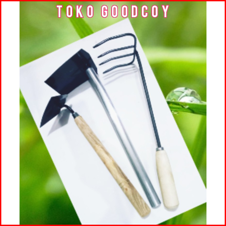 Cangkul Gagang Galvanis Garukan Rumput Pacul Taman Gagang Kayu Paket 3in1