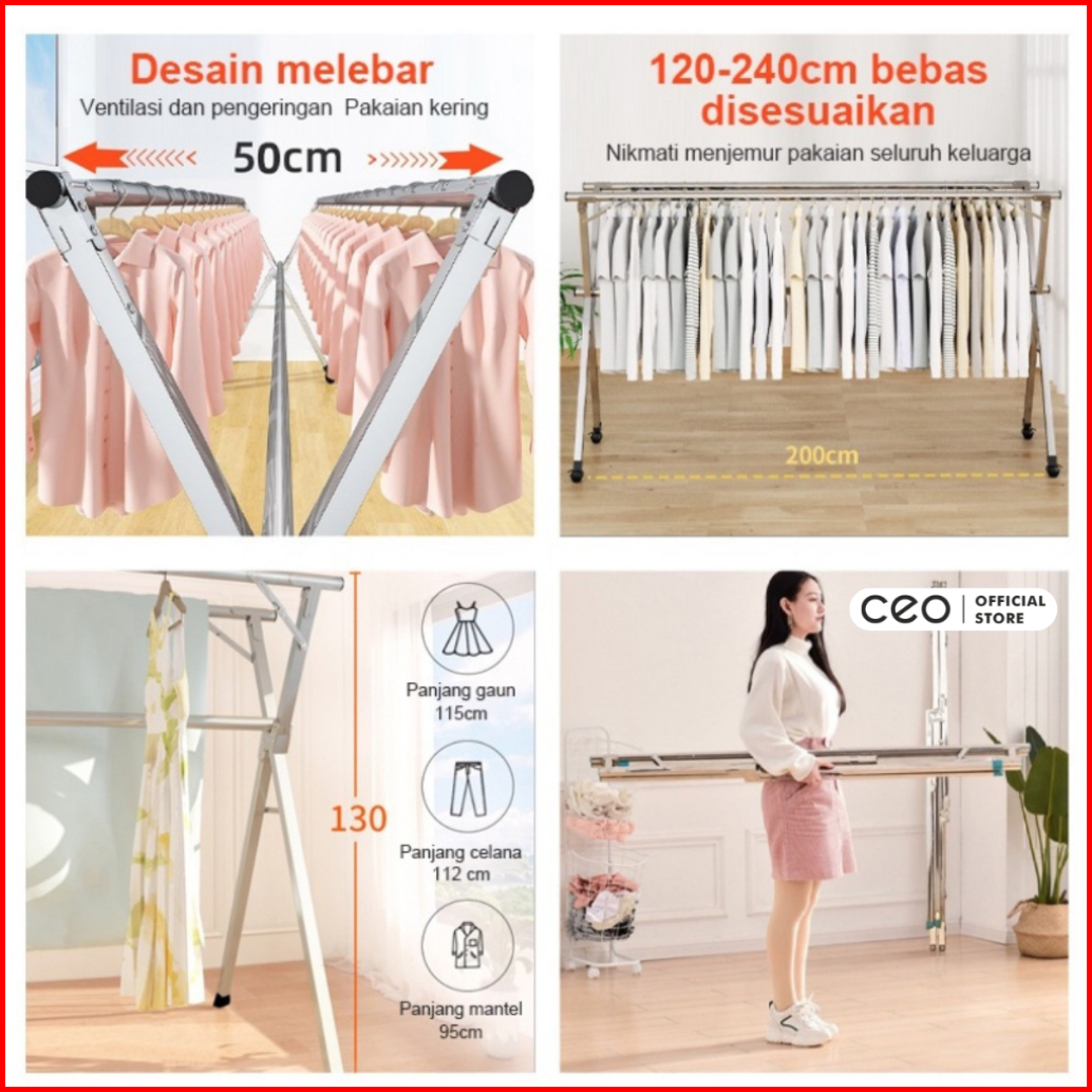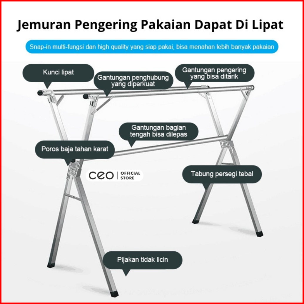 Ceo Jemuran Pakaian Gantungan Baju Lipat Tarik Stainless Steel 304 Portable Tahan Karat Kuat Kokoh
