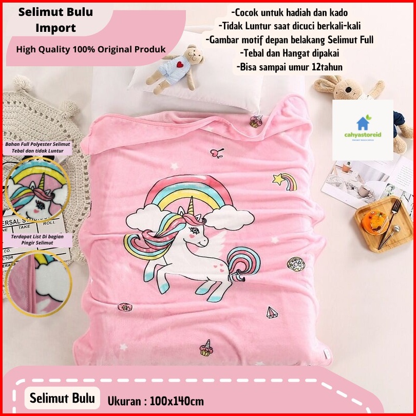 Selimut Tidur Kartun Bahan Bulu Lembut Dingin Ukuran 100x140 Cm Tidak Luntur