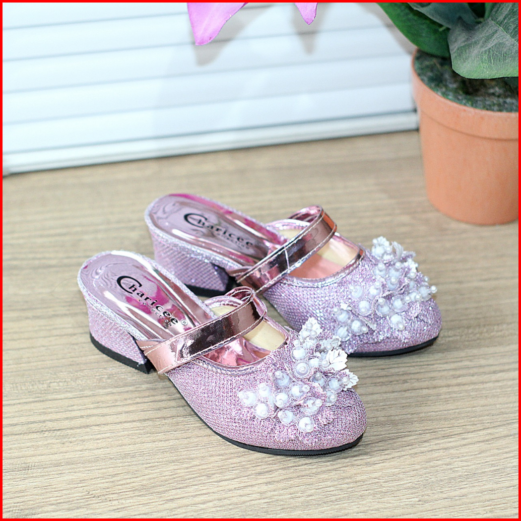Sandal Pesta Anak Perempuan Glossy Hak Tahu 3cm Selop Terbaru