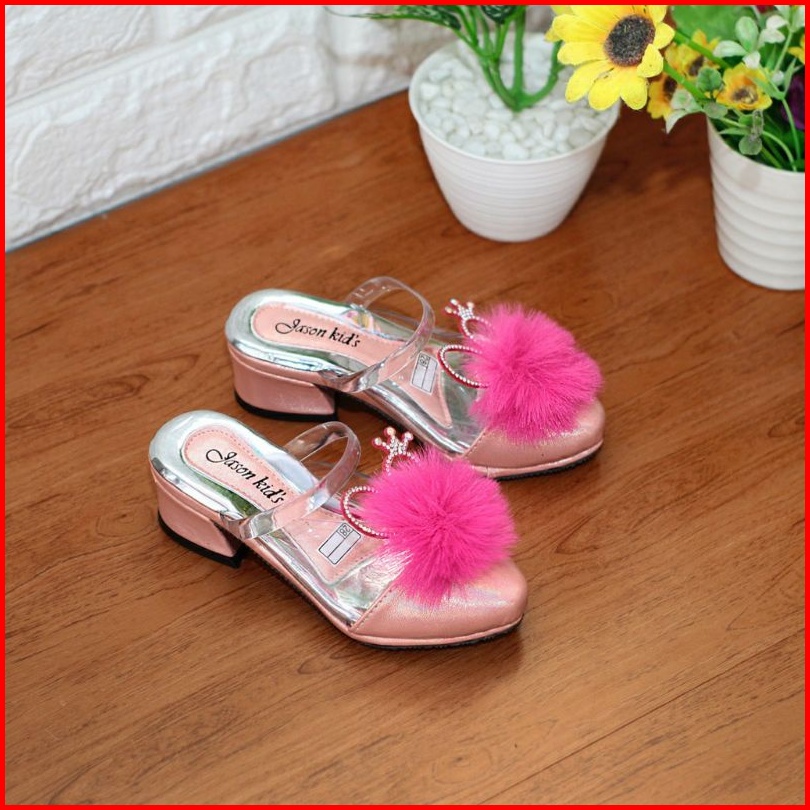 Sandal Pesta Anak Perempuan Hak Tahu Motif Bulu Kelinci Sm01
