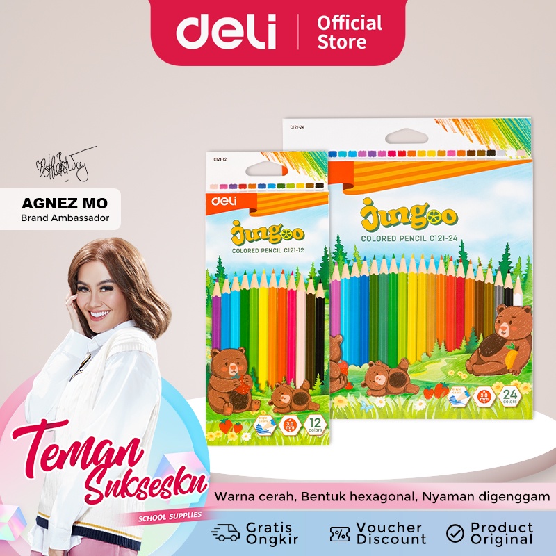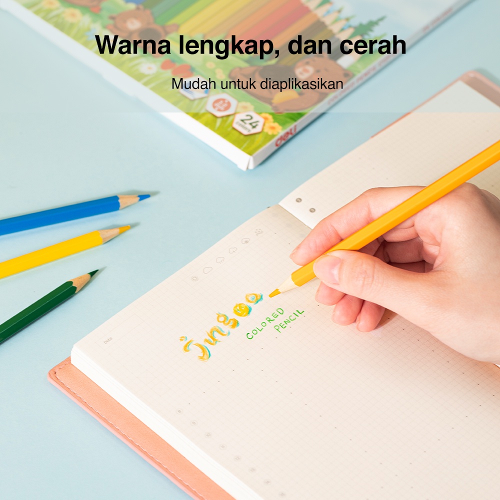 DELI COLORED PENCIL / PENSIL WARNA LUCU 12 24 WARNA PEWARNAAN CERAH EC121-XX