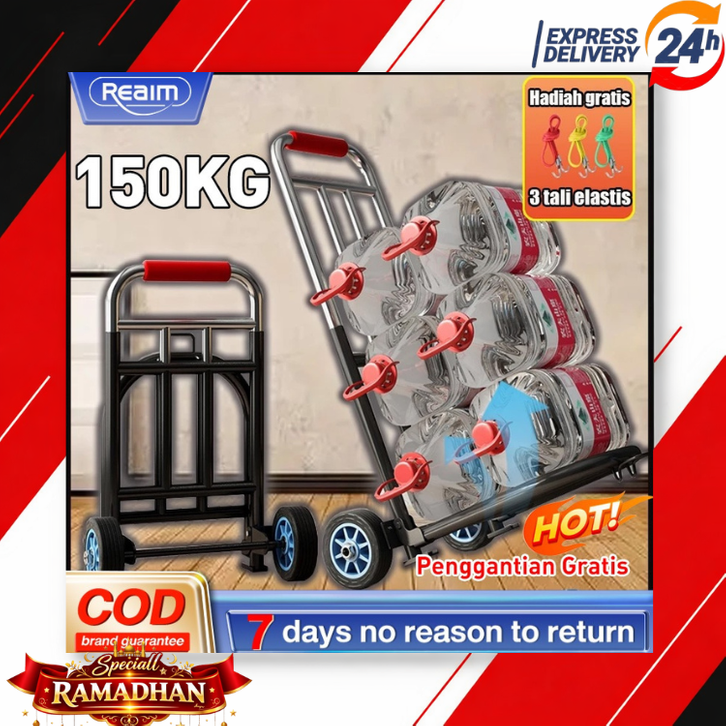 [Star] Reaim Trolley Trolley barang serbaguna Beli Makanan dan Belanja Trolley Besi Lipat