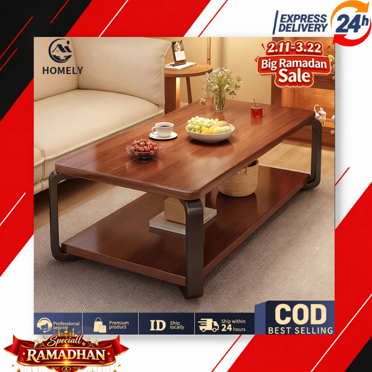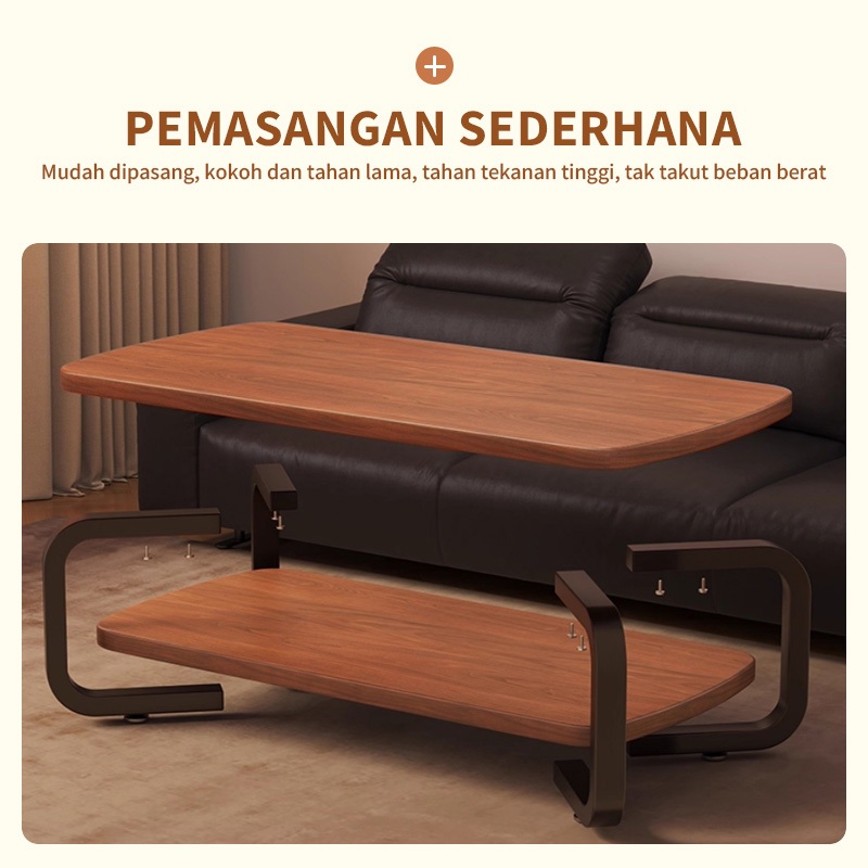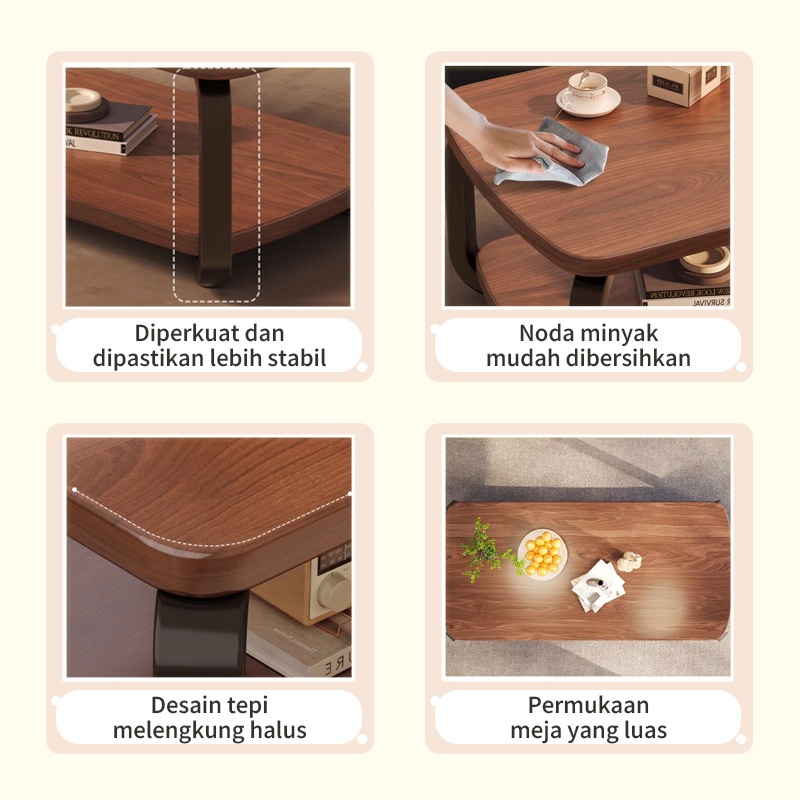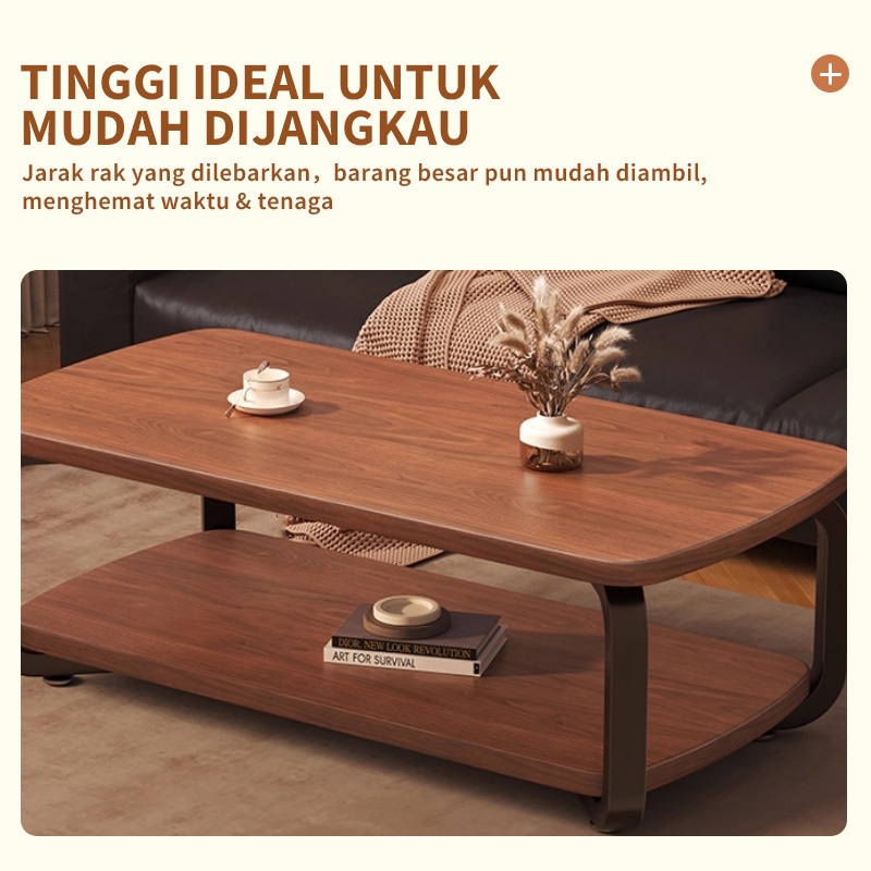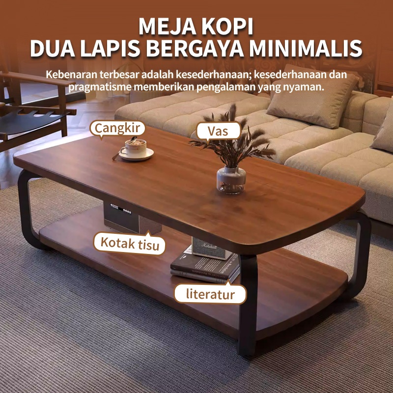 [Star] Meja Kopi Teh 2 Tingkat Veneer Kayu Mewah Sentuhan Mewah Ruang Tamu - Meja Ruang Tamu Minimalis Murah Elegant