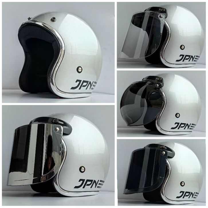 HELM BOGO WANITA JPN LIST CHROME SILVER METALIC HELM CLASSIC HALF FACE HIJAB TERMURAH TERLARIS BEST SELLER ORIGINAL