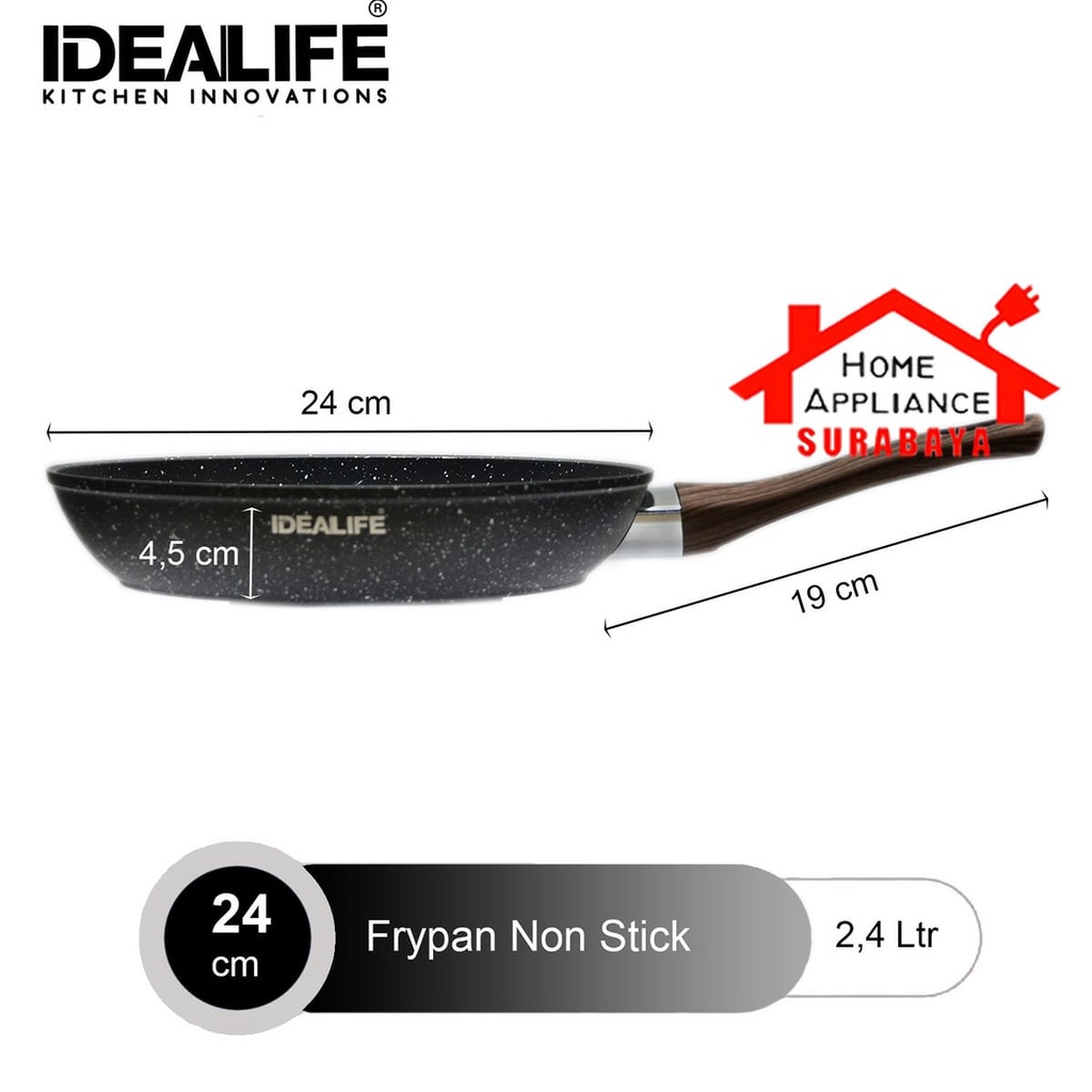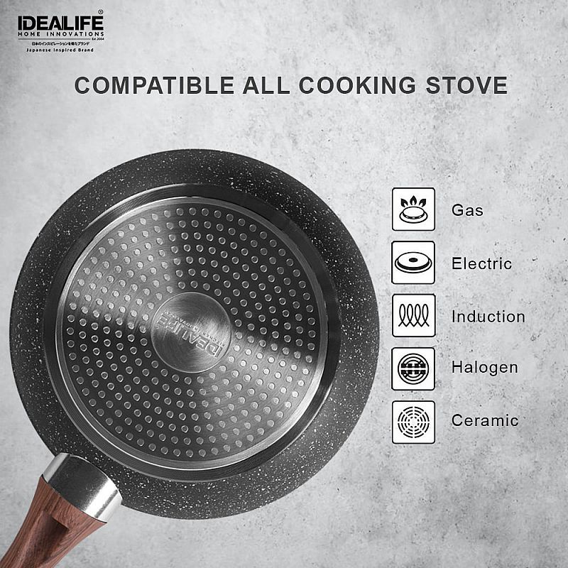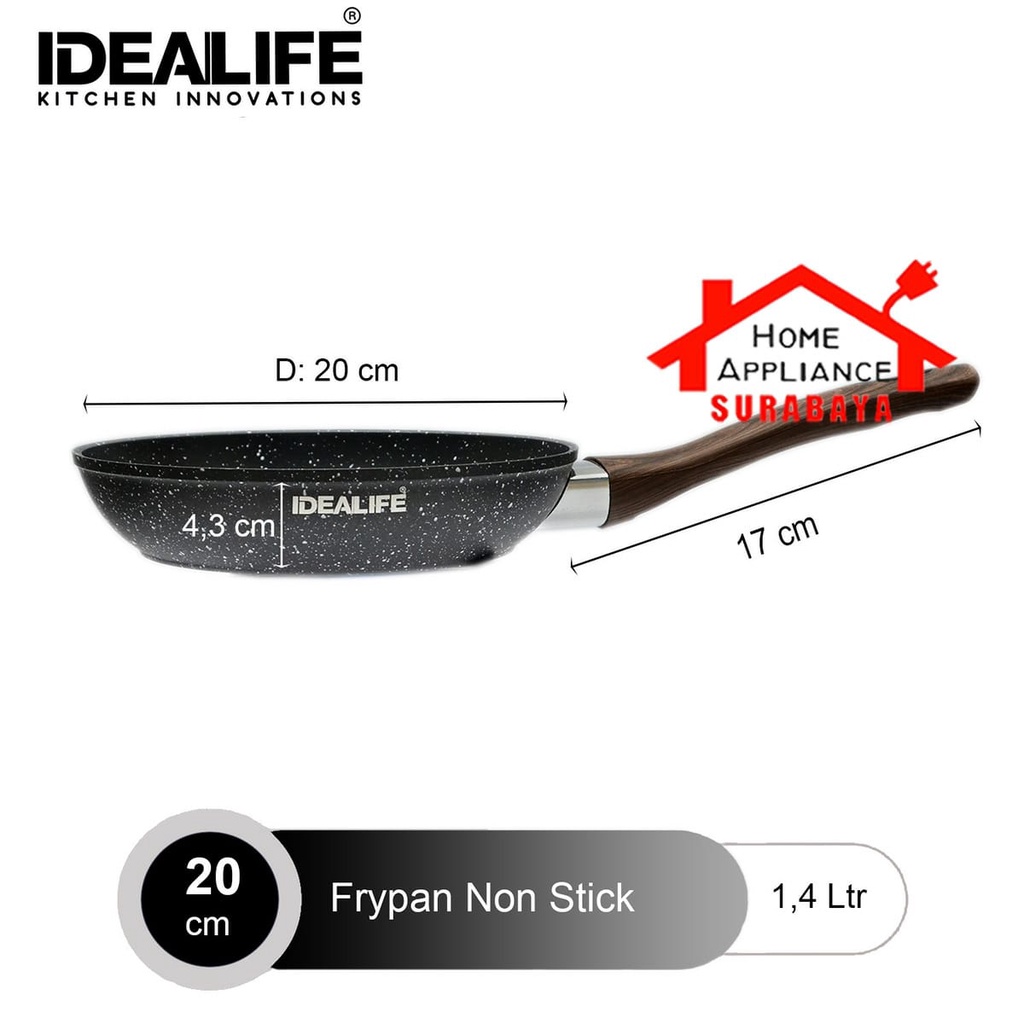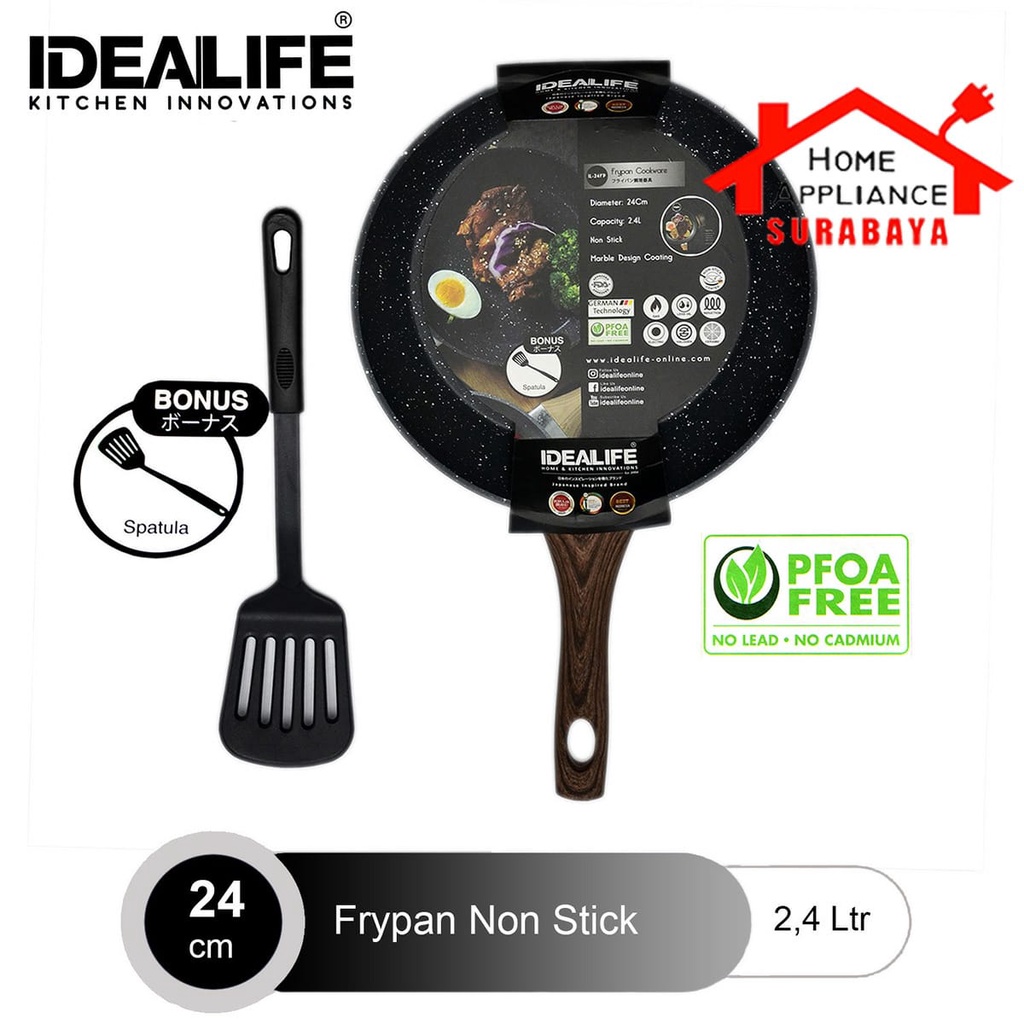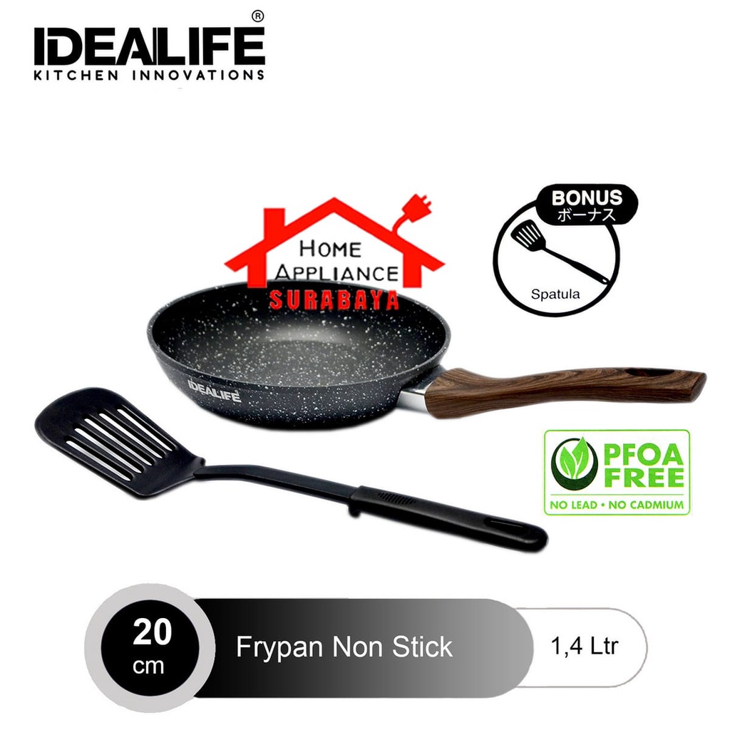IDEALIFE PANCI COOKWARE FRYPAN - FRY PAN MARBLE ANTI LENGKET + SPATULA 20CM IL-20FP / 24CM IL-24FP