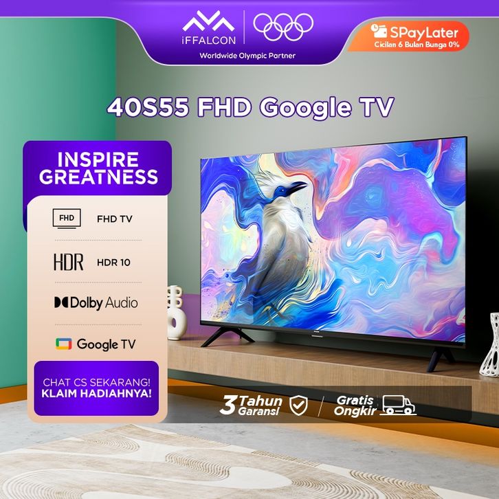 IFFALCON TCL S55 GOOGLE TV 43 INCH ANDROID 14 SMART DIGITAL FHD HDR 10 DOLBY AUDIO YOUTUBE WIFI BLUETOOTH 43 40 32 IN