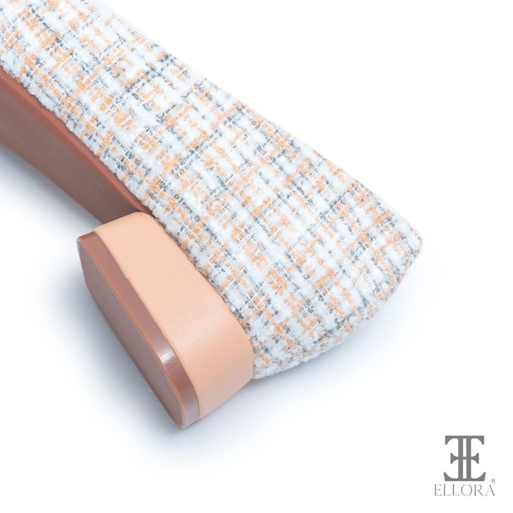 SEPATU PANTOFEL WANITA HAK CHUNKY HEELS 2.5CM BAHAN TWEED ELLORA EG 322-98 SEPATU PESTA WANITA KEKINIAN