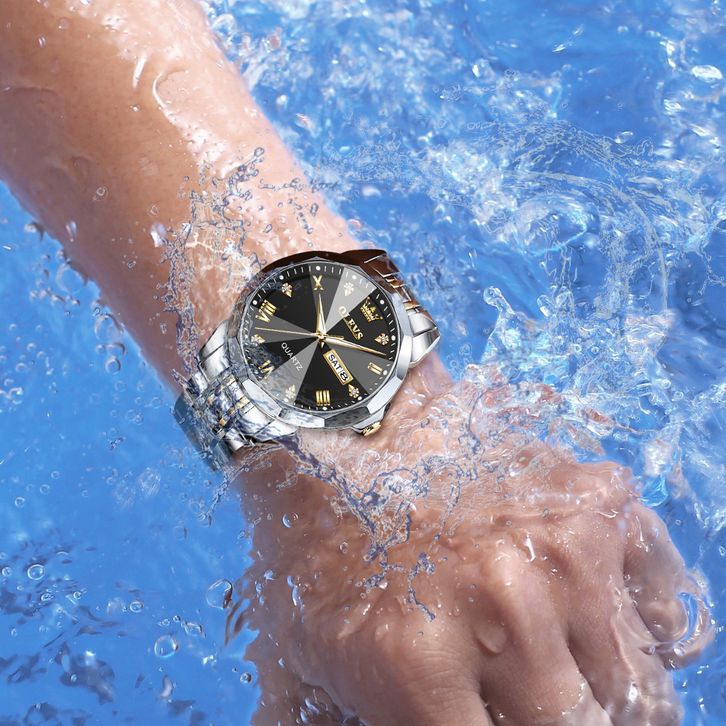 Jam Tangan Pria OLEVS Original Terbaru Led Mewah Hitam Luxury Anti Air Rantai Stainless Steel