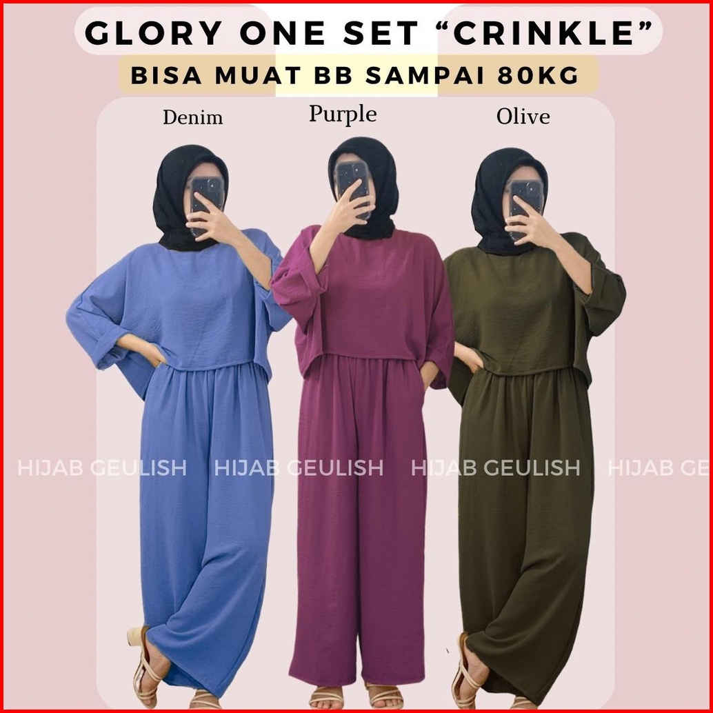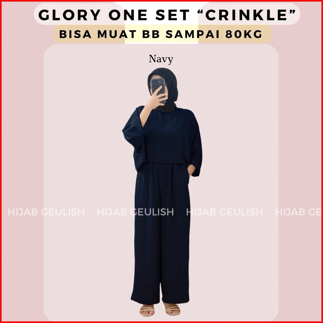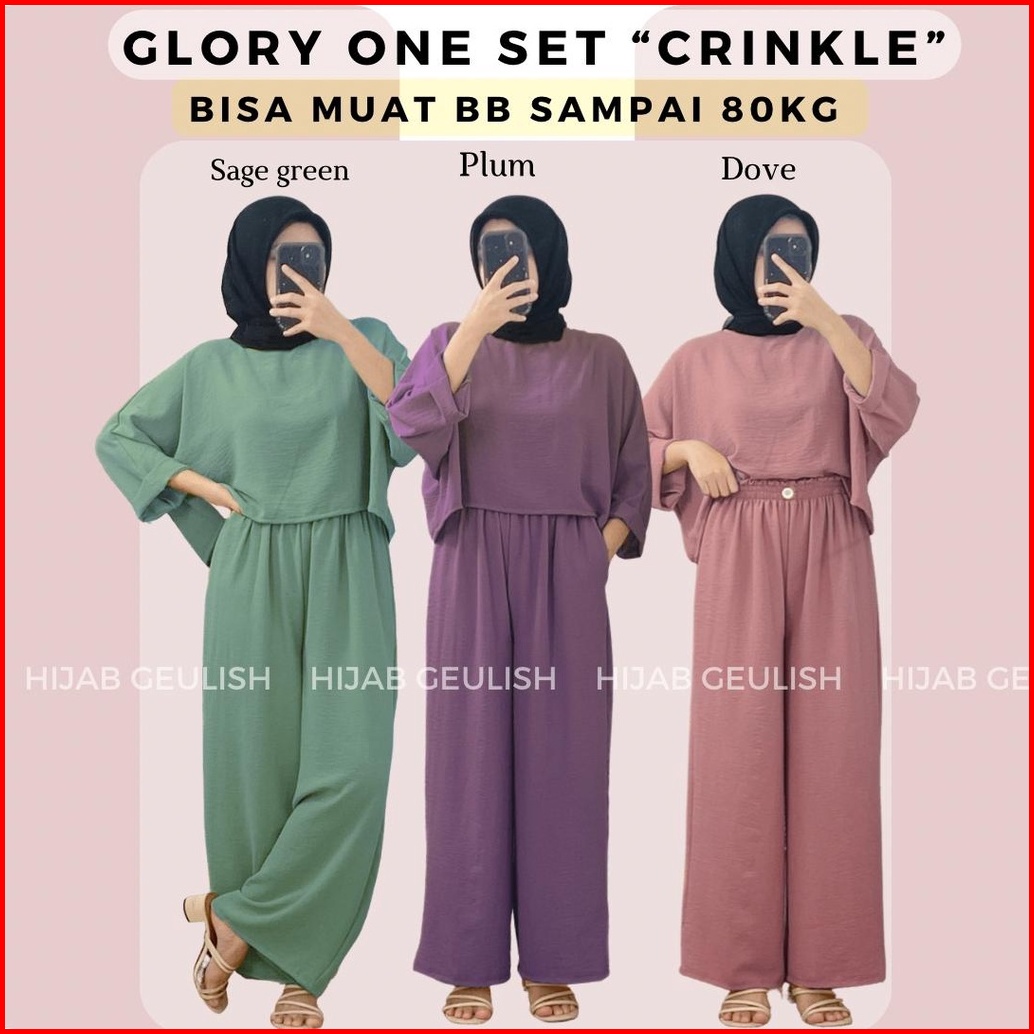 Glory One Set Crop Top Crinkle Setelan Wanita Crinkle Murah