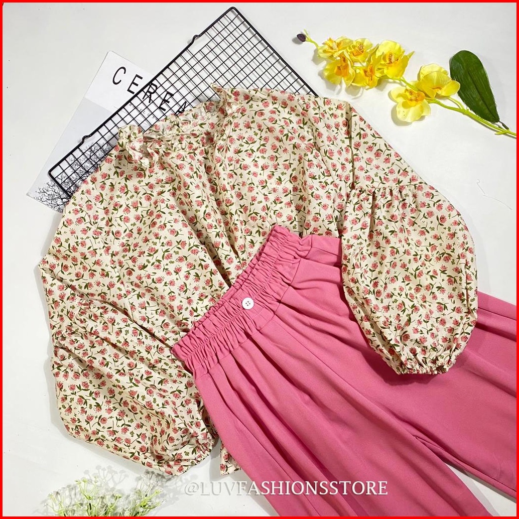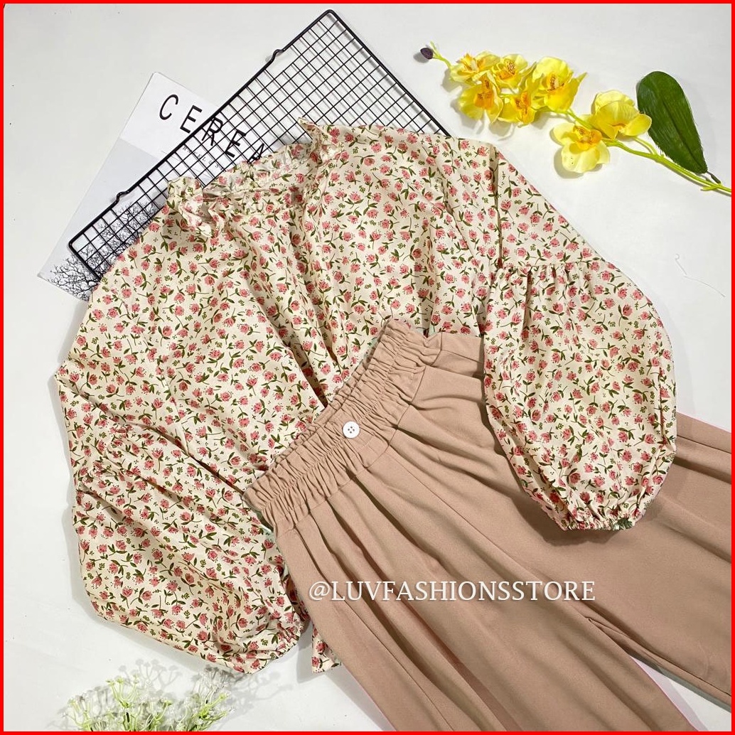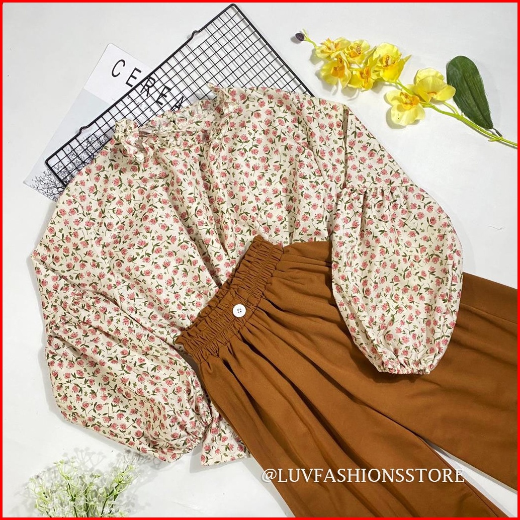 Il - Setelan Blouse Sanny Motif Floral Terbaru Set Kulot Kancing Crepe Atasan Blouse Wanita